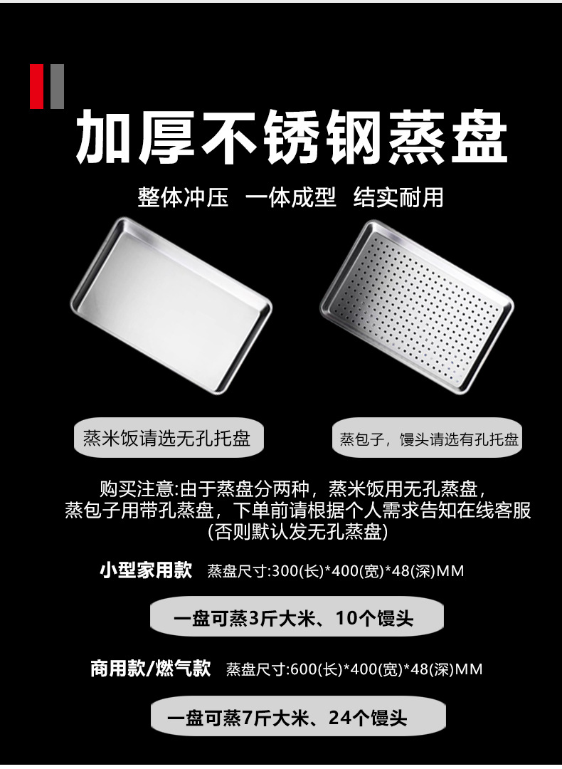 • 상업용 8단 가스 모델(화염 방지 기능 내장)(스팀 트레이가 녹슬면 교체 보장)