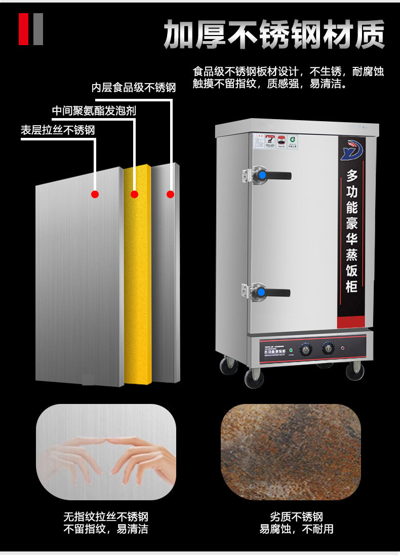 • 상업용 8단 표준 전기 가열 모델(스팀 트레이가 녹슬면 교체 보장)