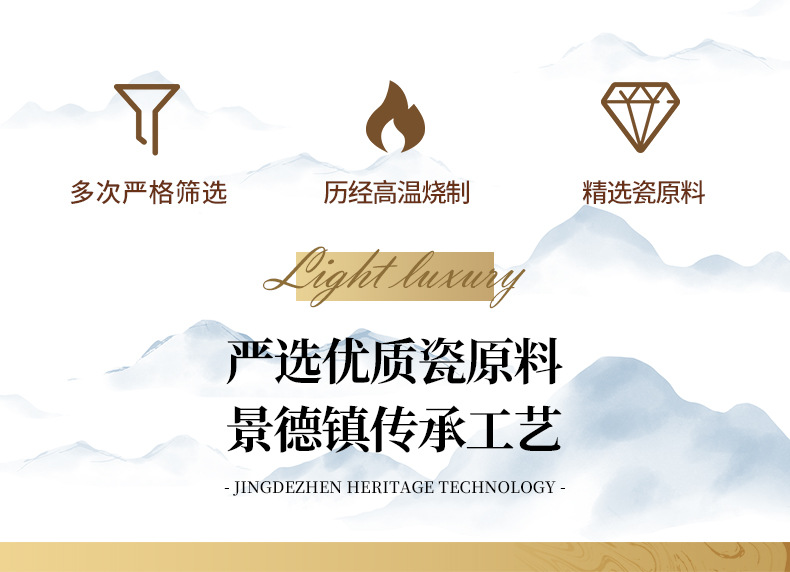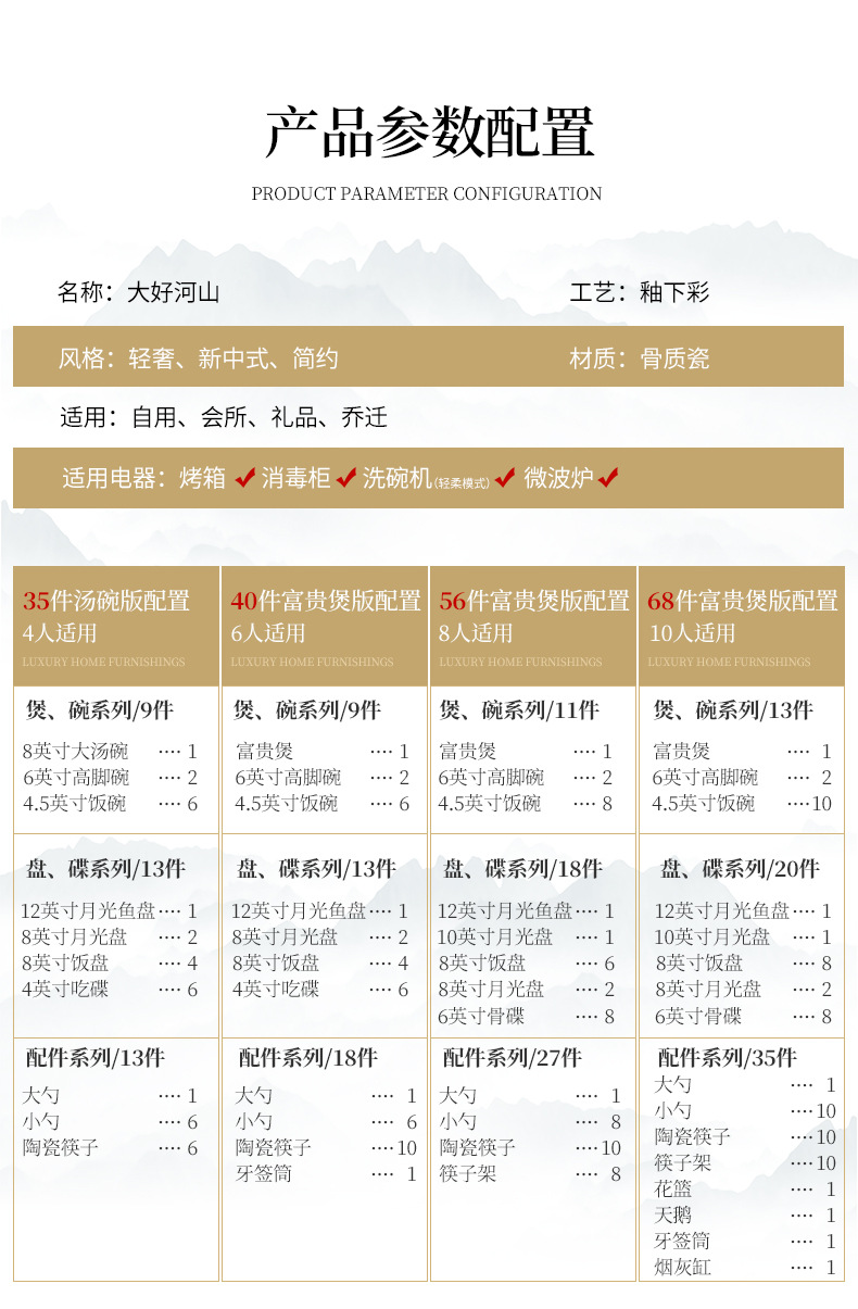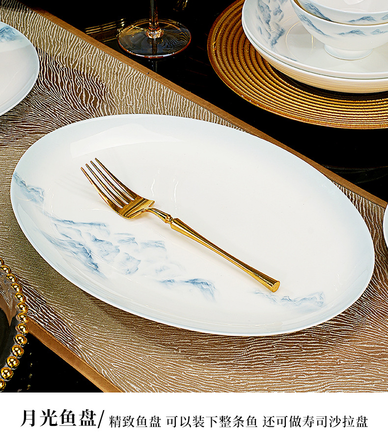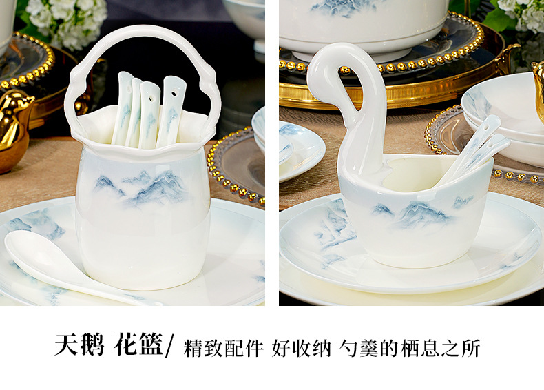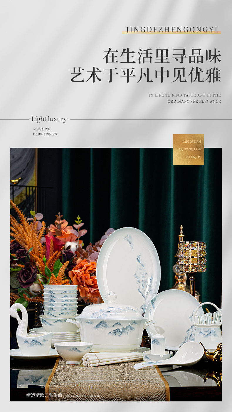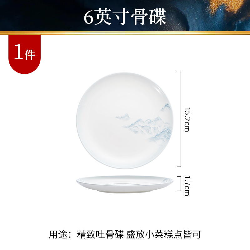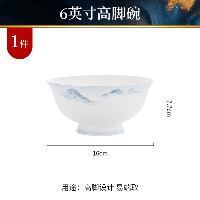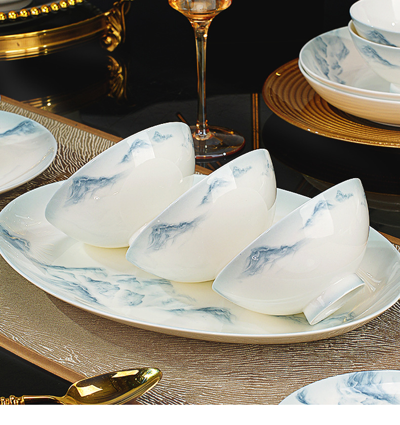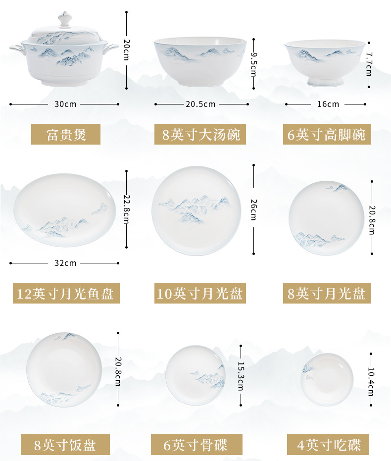 탕산 본차이나 그릇 가정용 유약 밑색 식기 세라믹 국그릇 밥그릇 접시 풍경 중국풍 도매