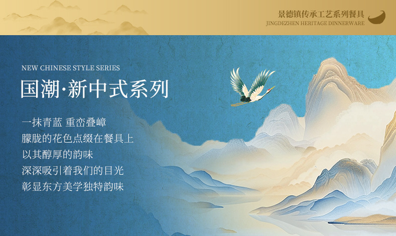 탕산 본차이나 그릇 가정용 유약 밑색 식기 세라믹 국그릇 밥그릇 접시 풍경 중국풍 도매스토어 가기
