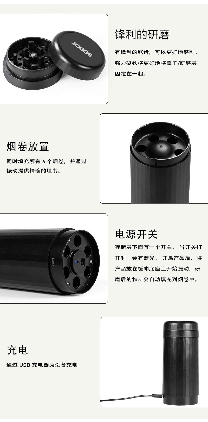 Xiyin 폭발성 대용량 분쇄기 진동 연기 분쇄기 트럼펫 튜브 담배 자동 충전 담배
