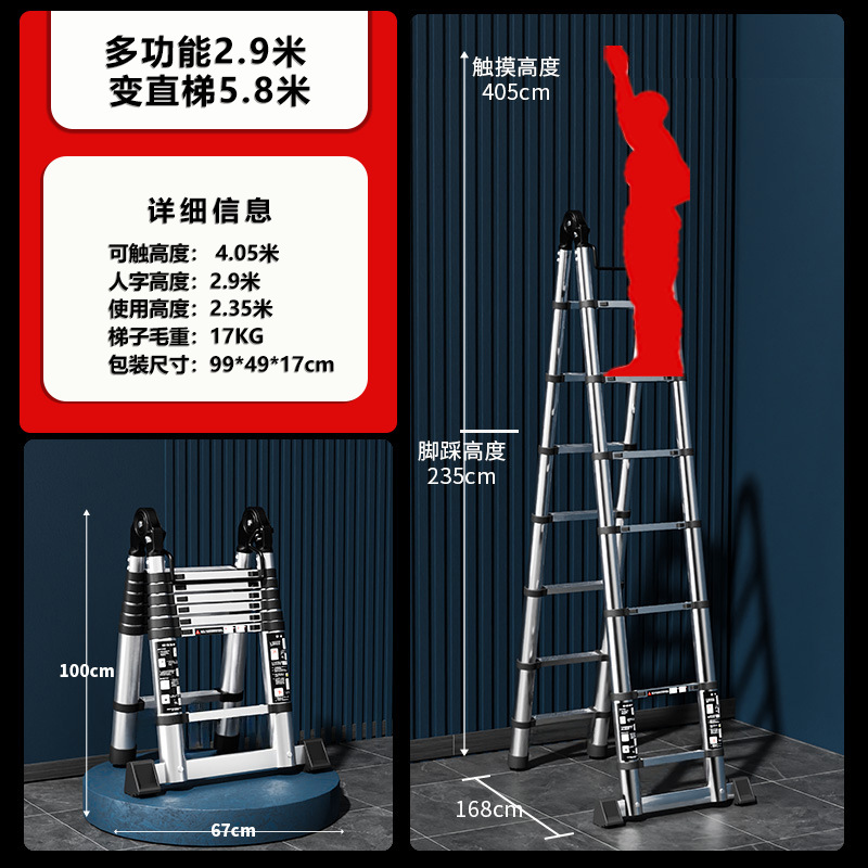 • 스테인레스 스틸 다기능 2.9+ 2.9m = 직선 사다리 5.8m