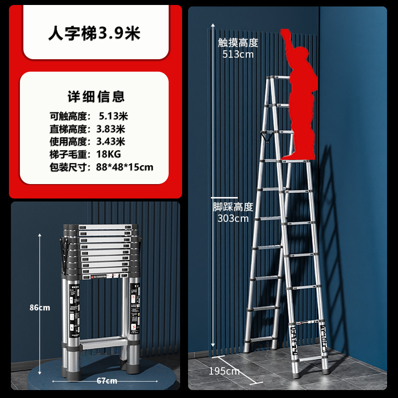접이식 사다리 헤링본 사다리 스테인레스 스틸 다기능 망원경 사다리 리프팅 스트레이트 사다리 헤링본 사다리 대나무 사다리 접이식스토어 가기