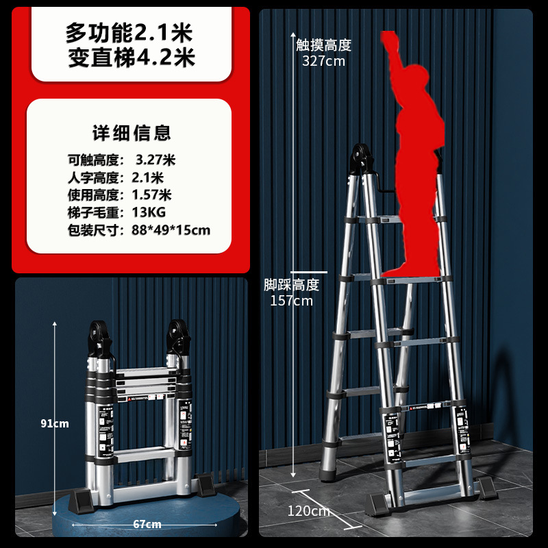 • 스테인레스 스틸 다기능 2.1+ 2.1m = 직선 사다리 4.2m