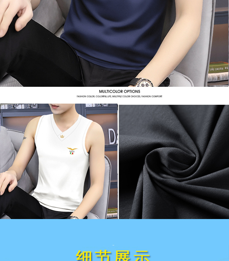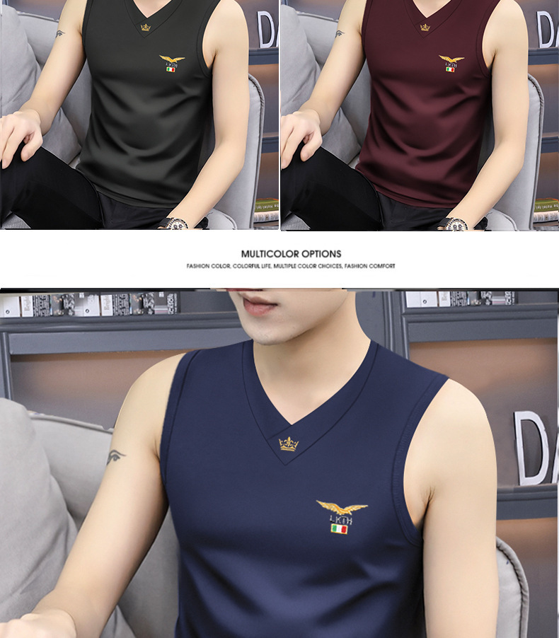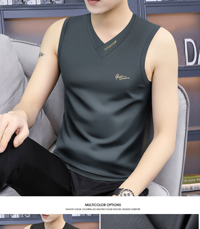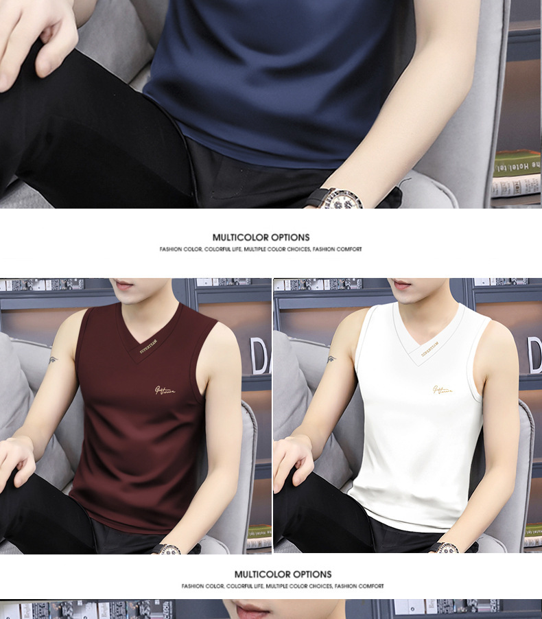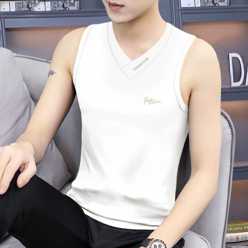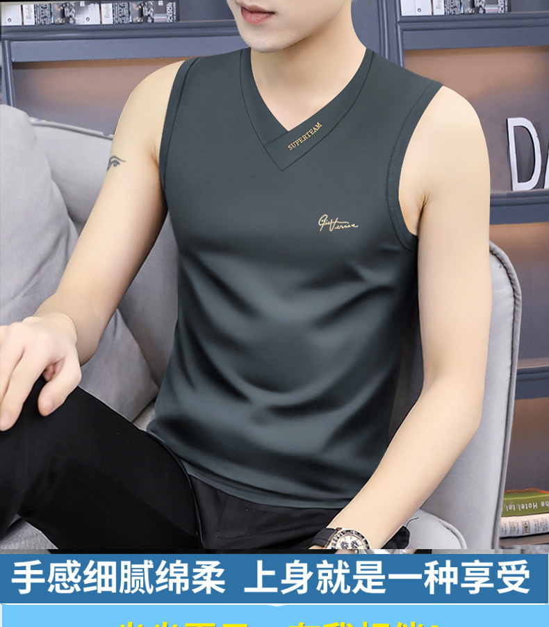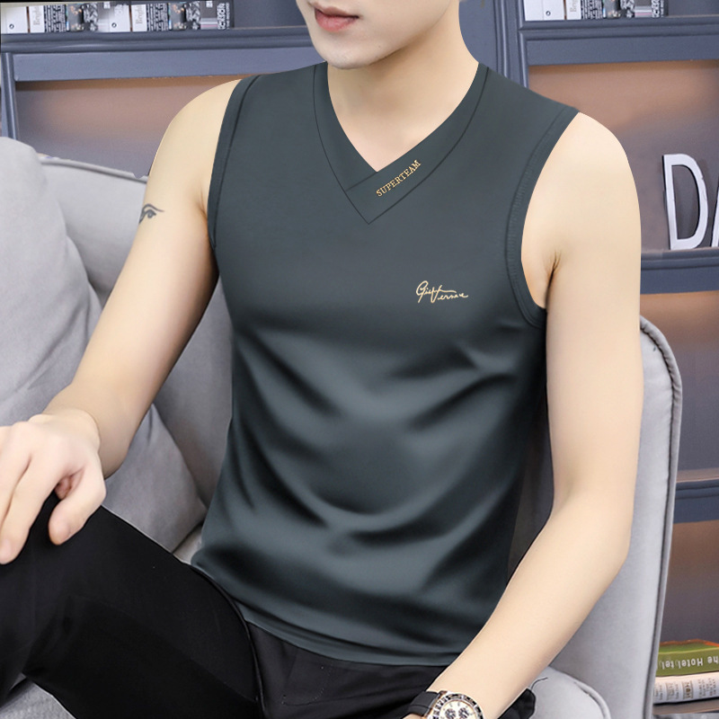 외부 착용 민소매 티셔츠 V-Neck Bottoming 스웨트 패션 브랜드 2025 뉴 여름 남성 V-Neck Vest 피트니스 웨이스트 코트