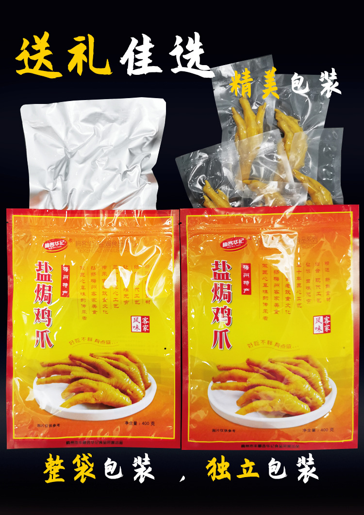 Mei Ke Hua Ji 소금 구운 치킨 클로 Meizhou Hakka 전문 소금 국 치킨 클로 넷 레드 레저 인스턴트 스낵 요리 식품