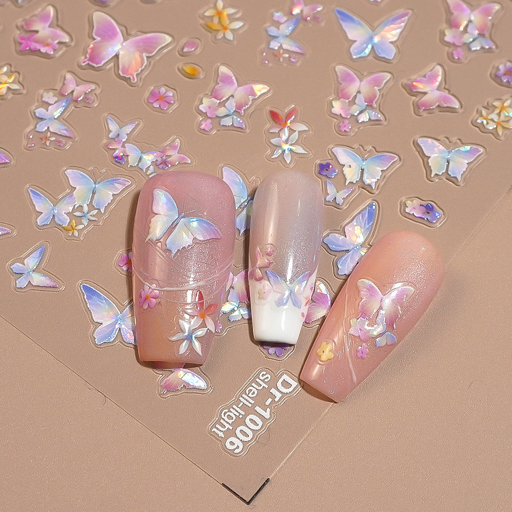 Redanco 새로운 5D 릴리프 폭발 나비 쉘 라이트 네일 스티커 3 차원 접착 네일 스티커 Dr-1006