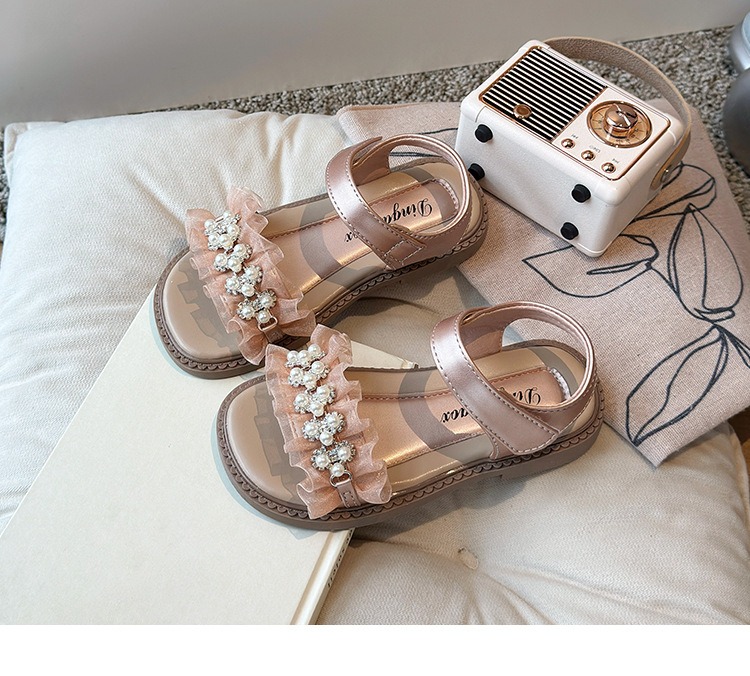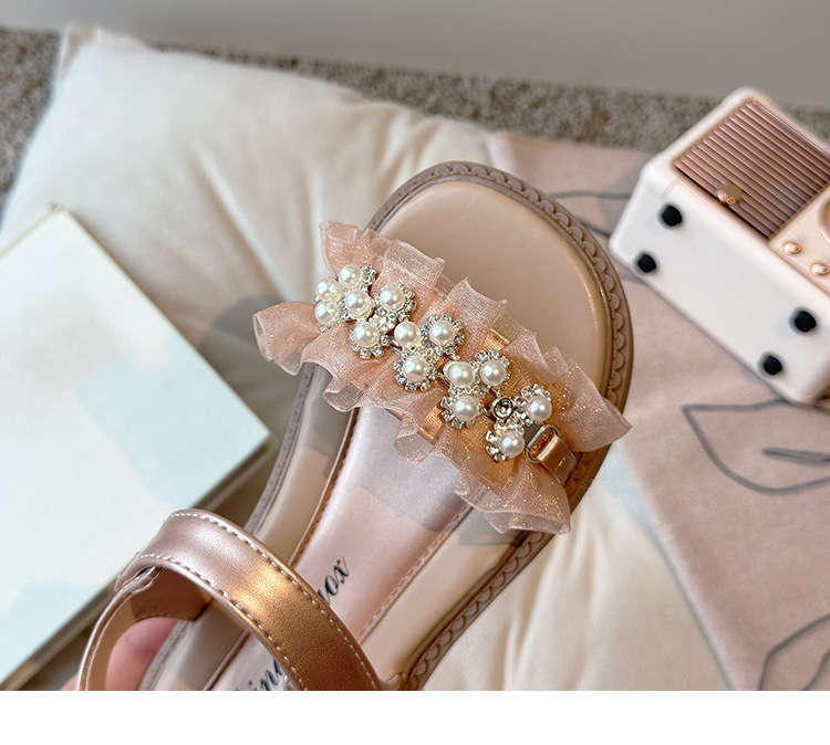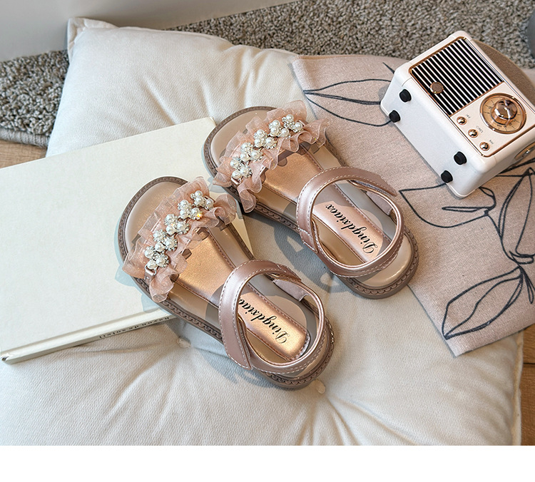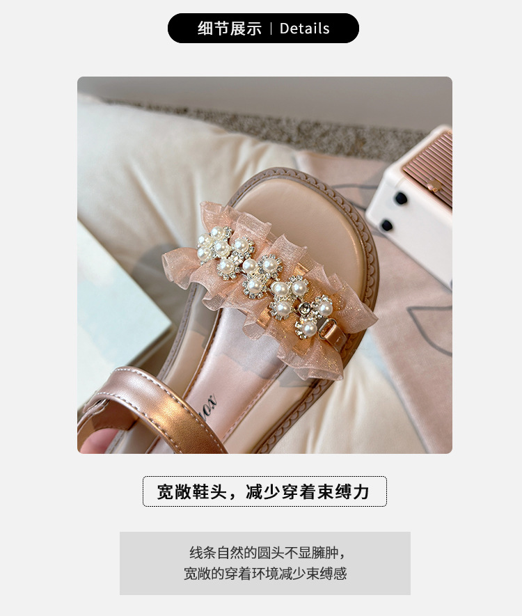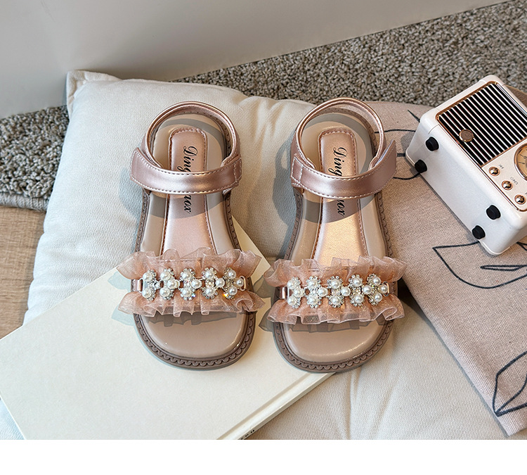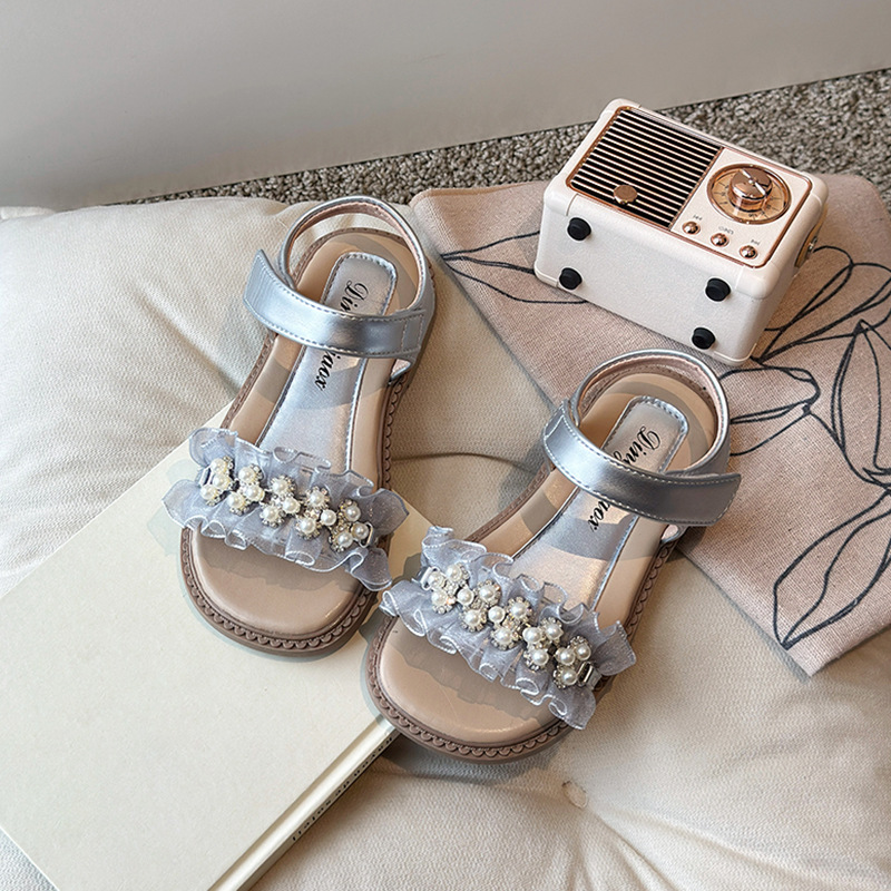 여자 패션 라인스톤 공주 신발 2025 여름 새로운 한국 스타일 어린이 오픈 발가락 샌들 귀여운 비치 신발
