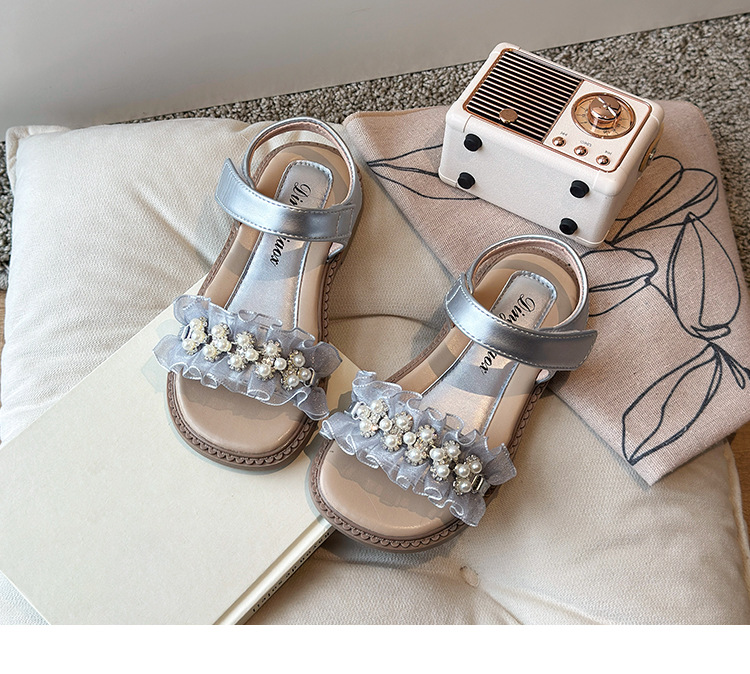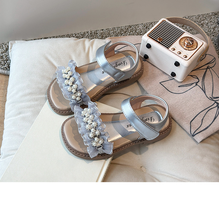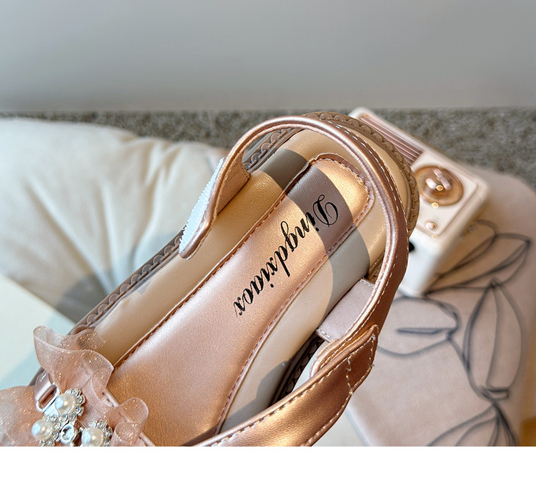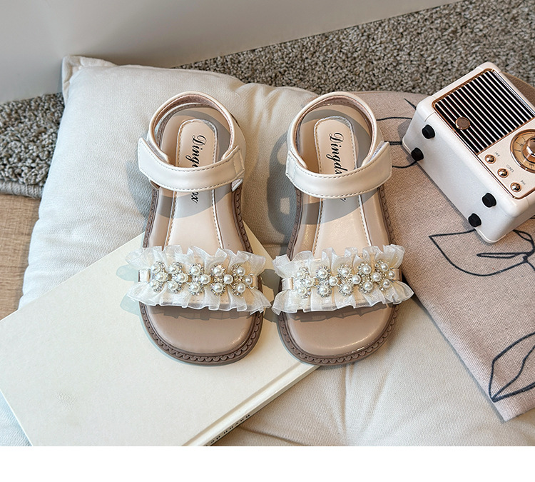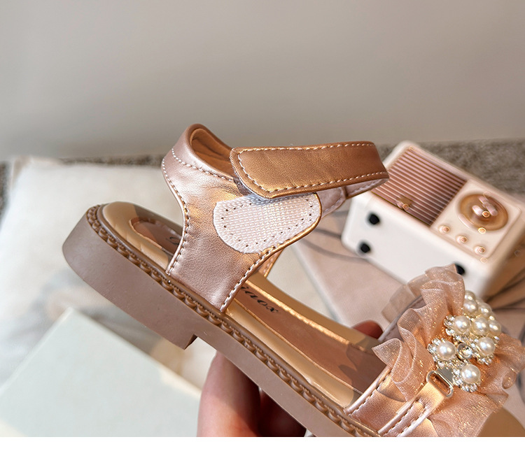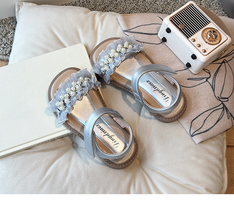 여자 패션 라인스톤 공주 신발 2025 여름 새로운 한국 스타일 어린이 오픈 발가락 샌들 귀여운 비치 신발