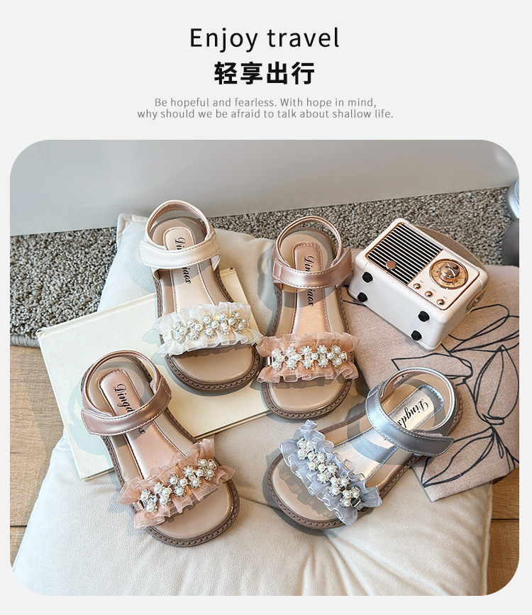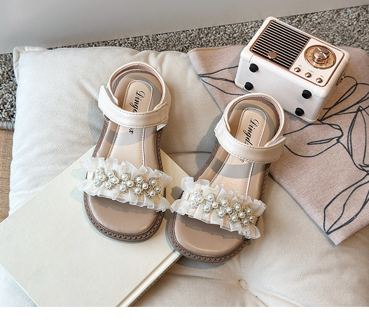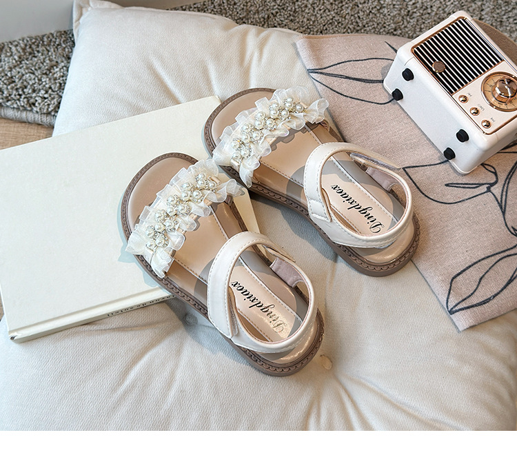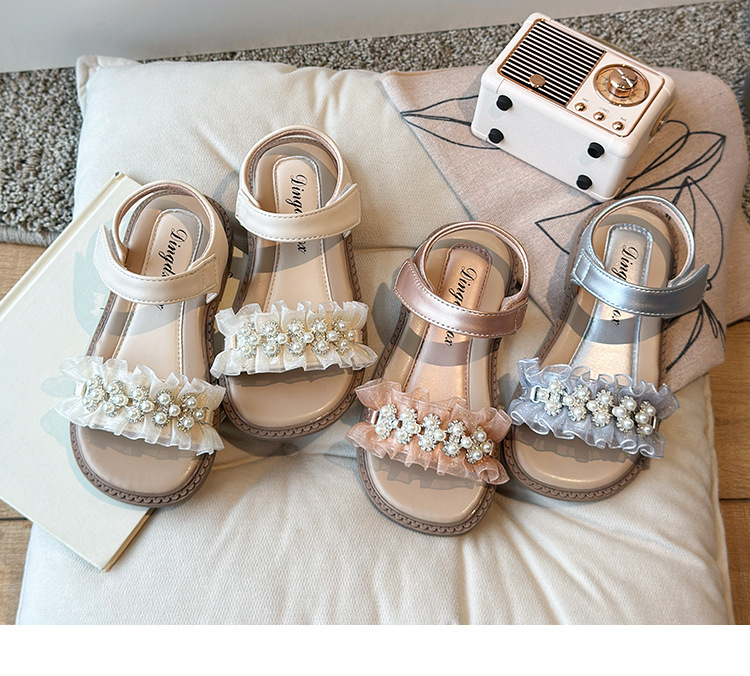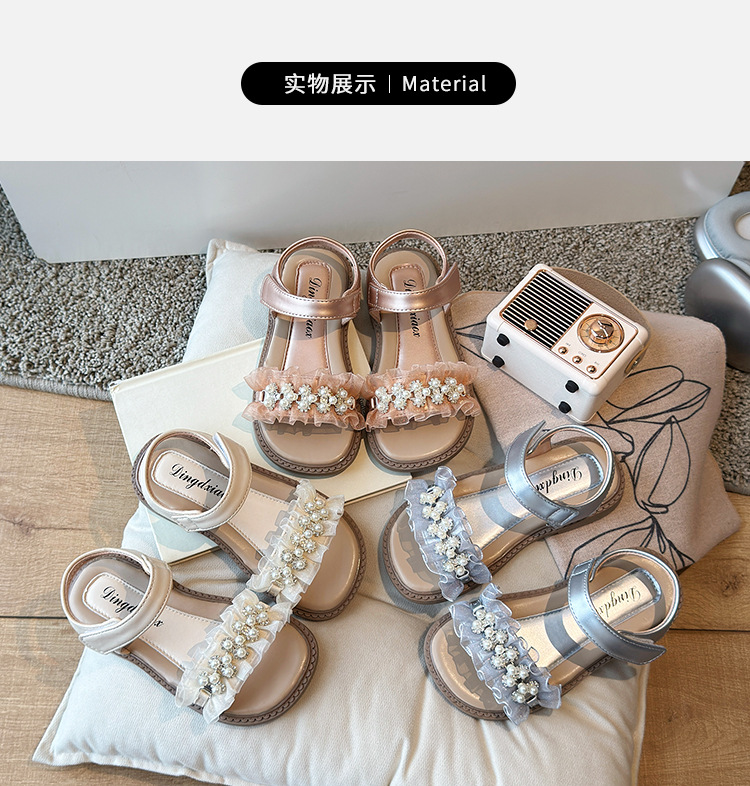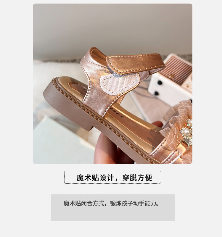 여자 패션 라인스톤 공주 신발 2025 여름 새로운 한국 스타일 어린이 오픈 발가락 샌들 귀여운 비치 신발스토어 가기