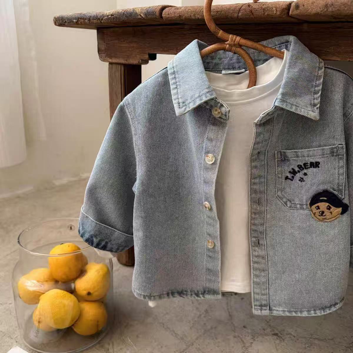 2025 년 봄과 가을 남학생 아기 어린이 데님 셔츠 코트 긴팔 셔츠 아동복 아동복 어린이 탑 한국어 버전스토어 가기