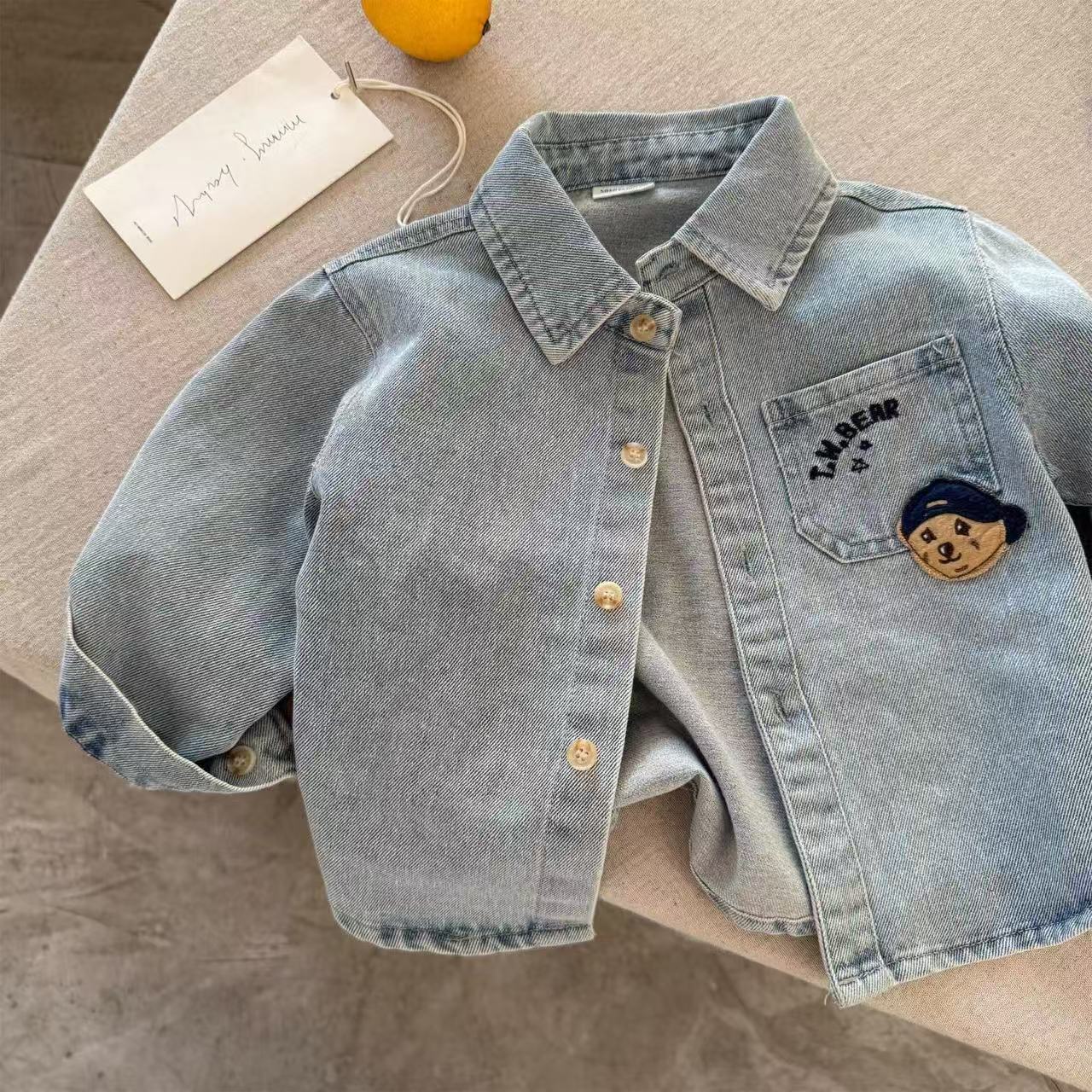 2025 년 봄과 가을 남학생 아기 어린이 데님 셔츠 코트 긴팔 셔츠 아동복 아동복 어린이 탑 한국어 버전