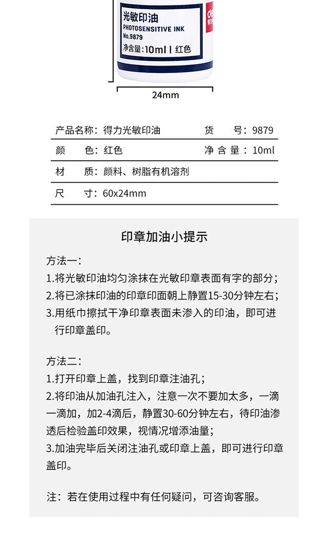 델리 9879 감광성 잉크 공식 도장용 잉크 빨간색 재무 전용 속건성 도장 잉크 영수증 잉크스토어 가기