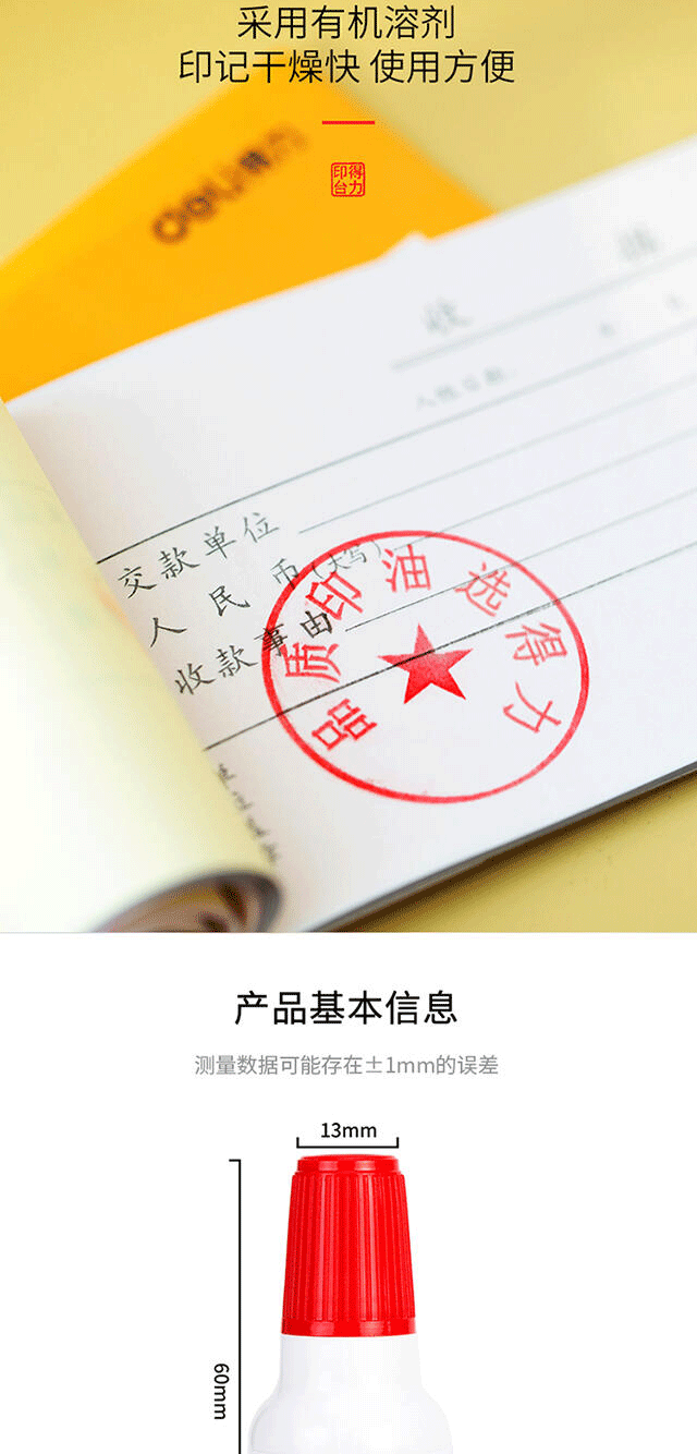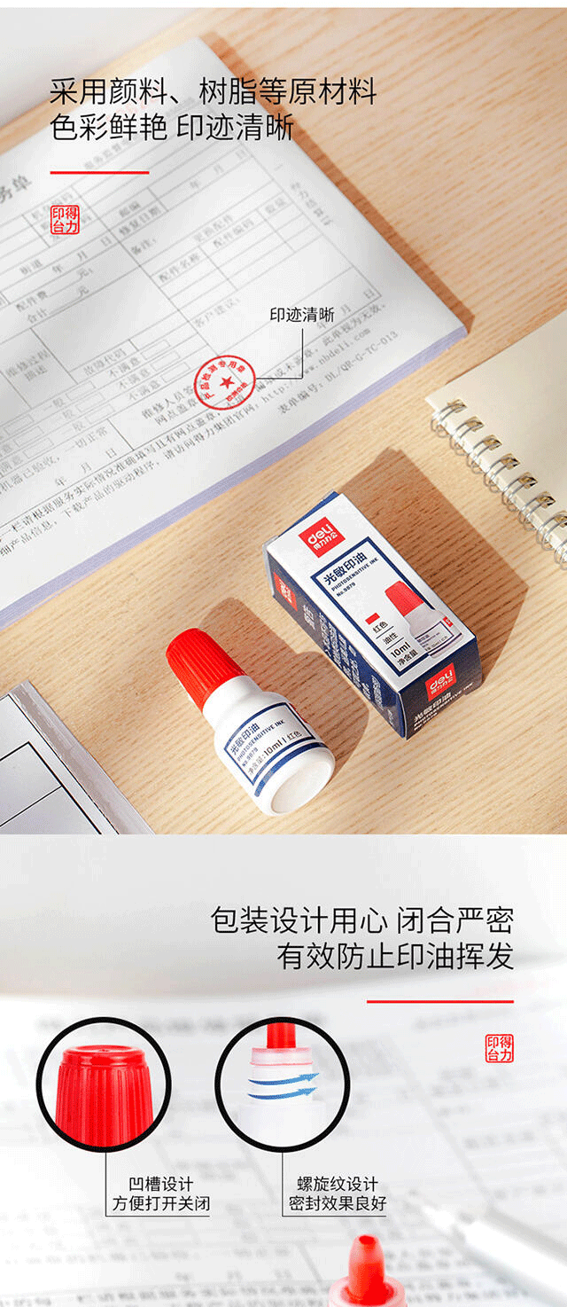 델리 9879 감광성 잉크 공식 도장용 잉크 빨간색 재무 전용 속건성 도장 잉크 영수증 잉크