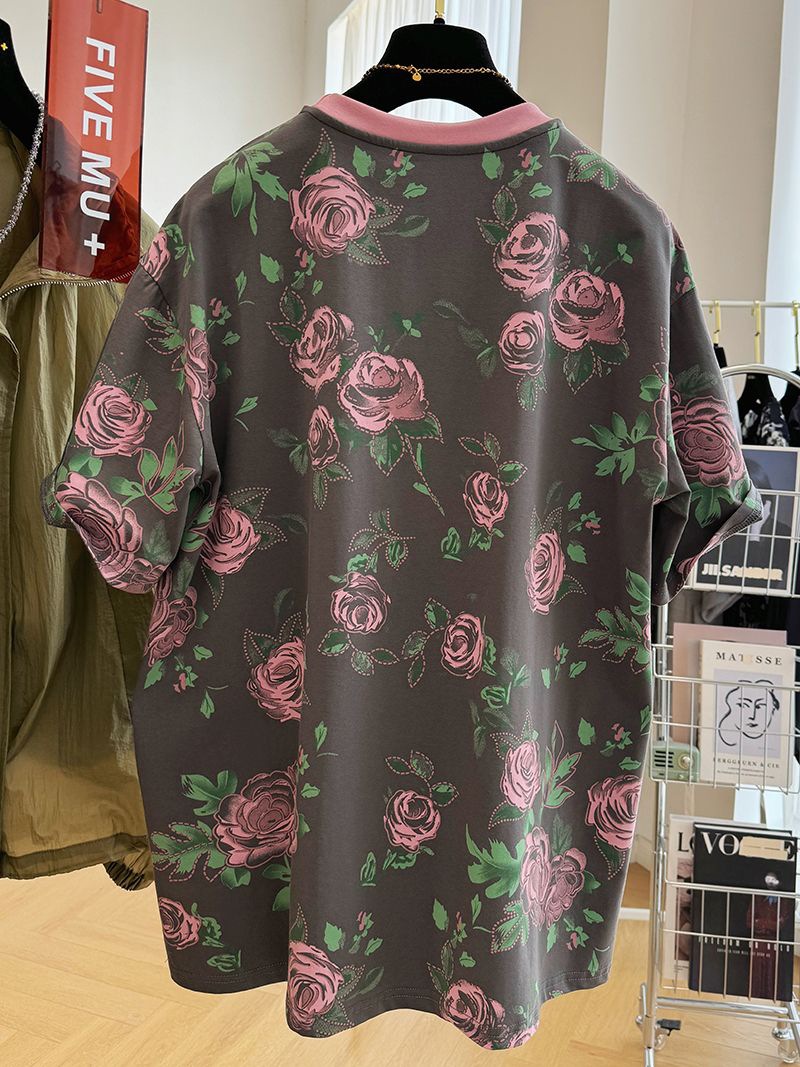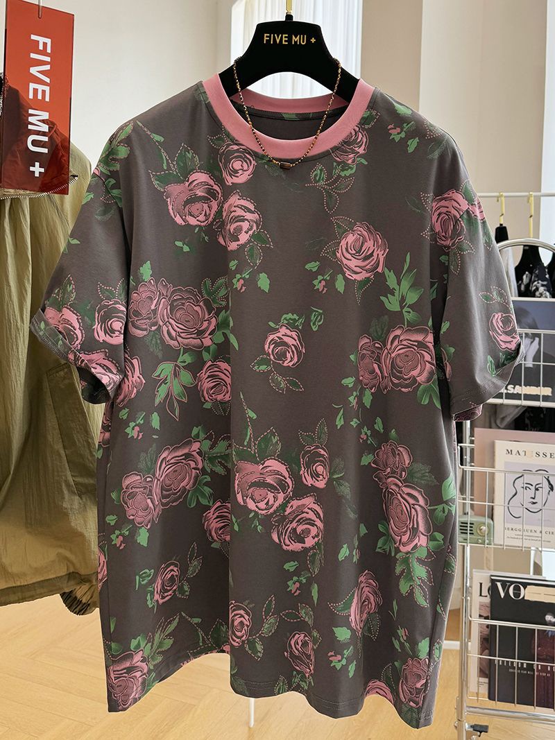 오버 사이즈 300 진 레트로 서양식 크루 넥 반팔 티셔츠 여성 여름 독특한 느슨한 반소매 탑 티셔츠스토어 가기