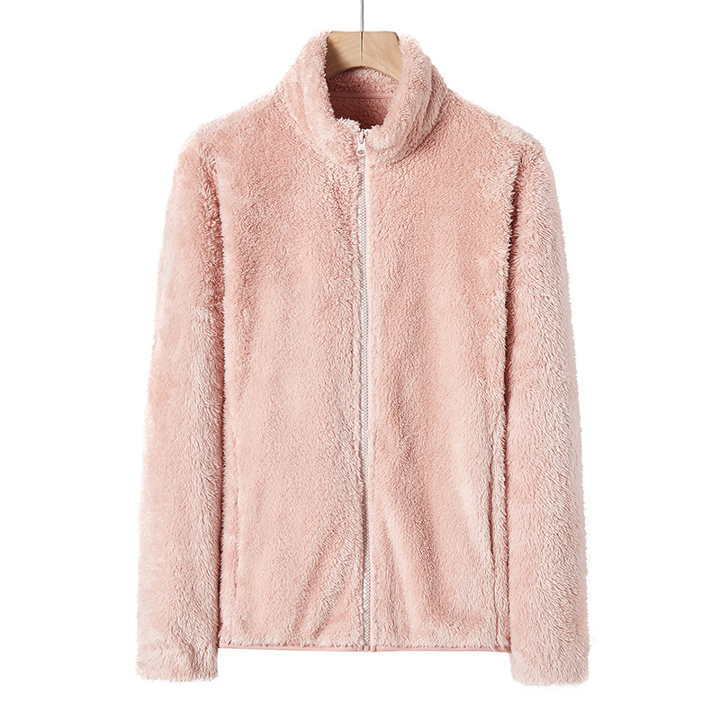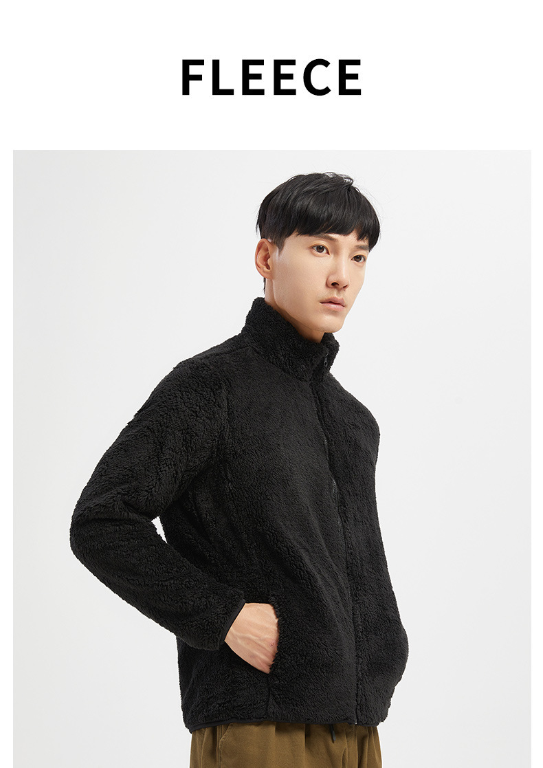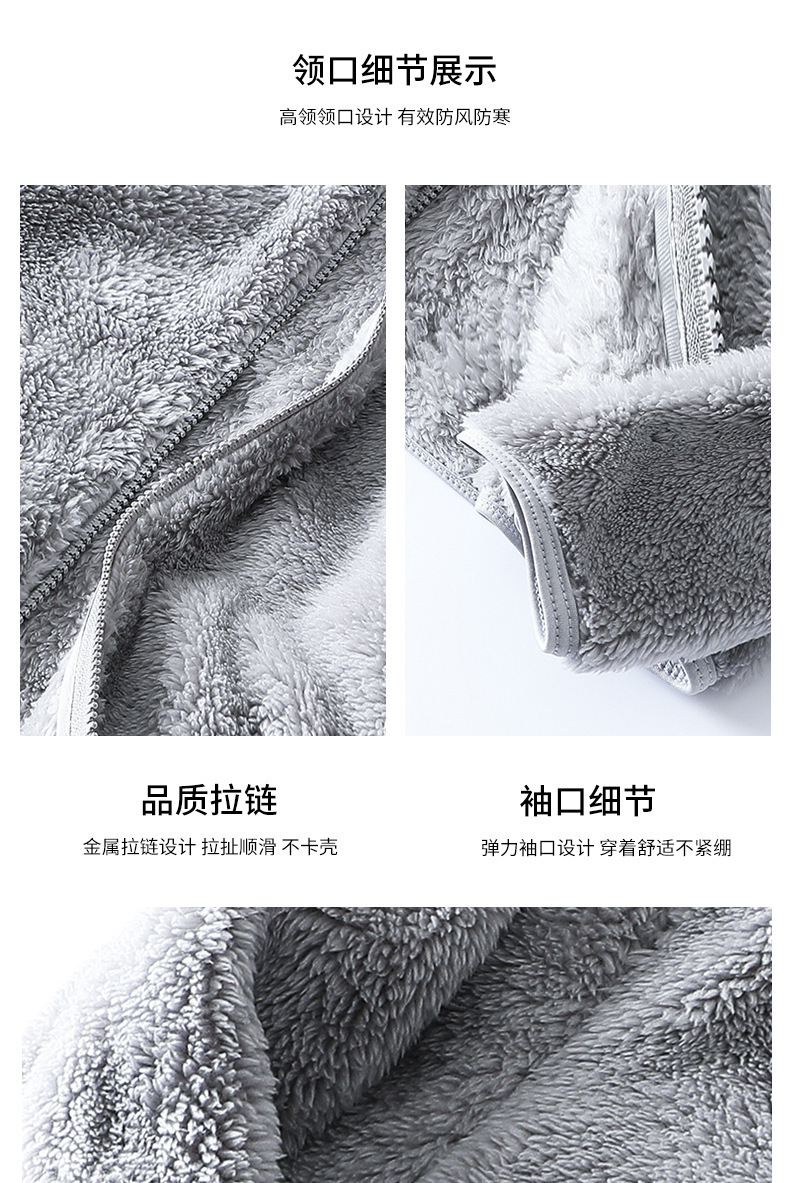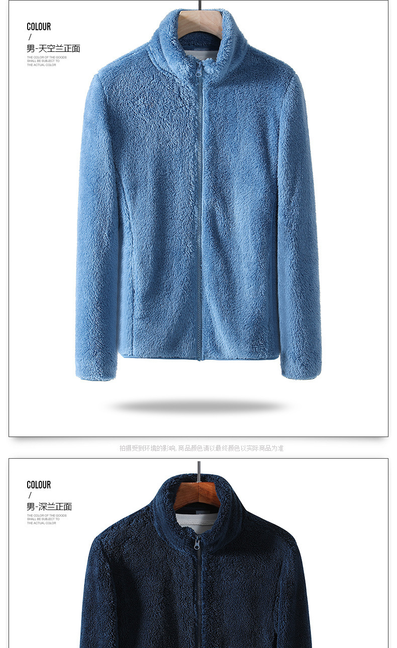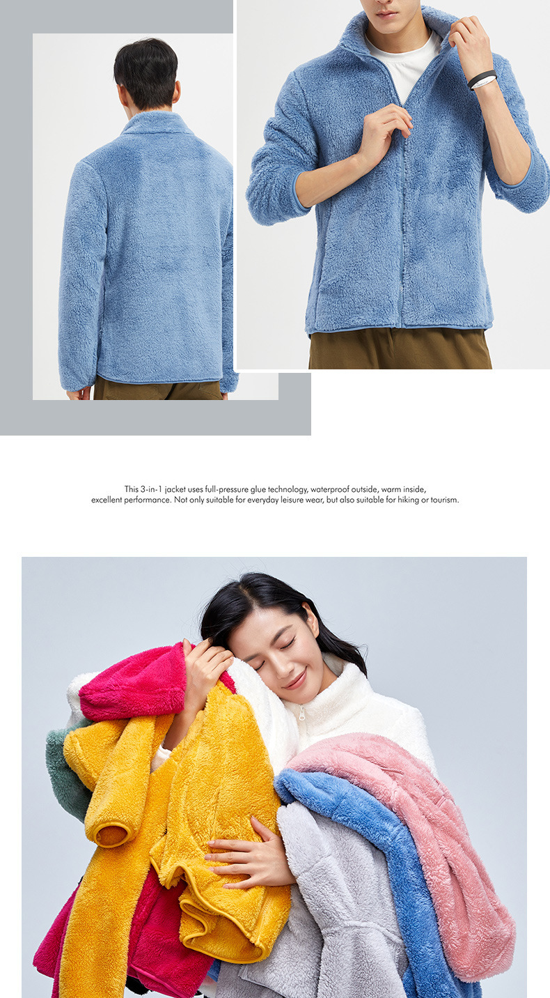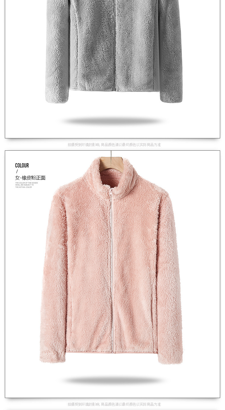 U 가족 같은 스타일 커플 양털 옷 남성 가을 및 겨울 단색 양면 기모 탑 두꺼운 재킷 여성 트렌디