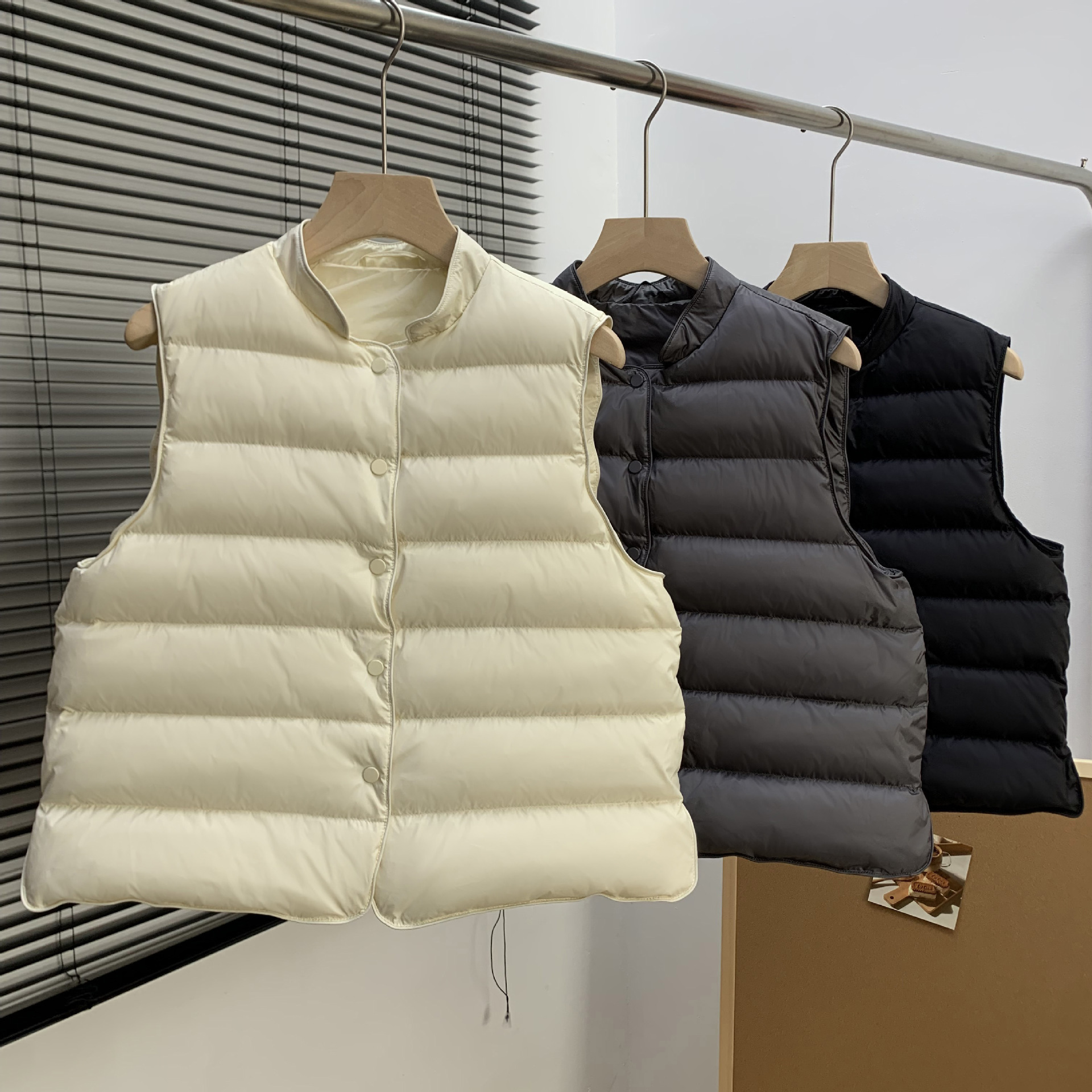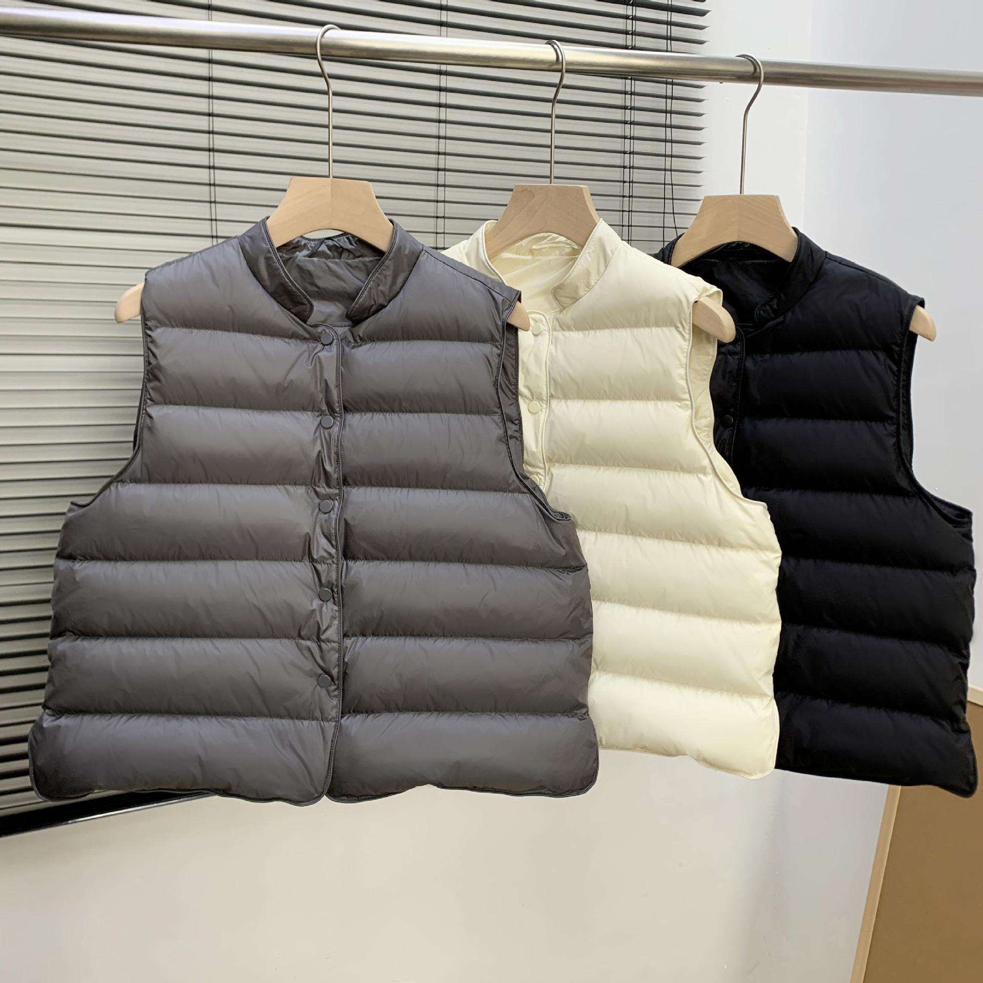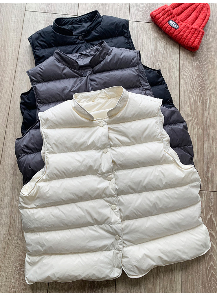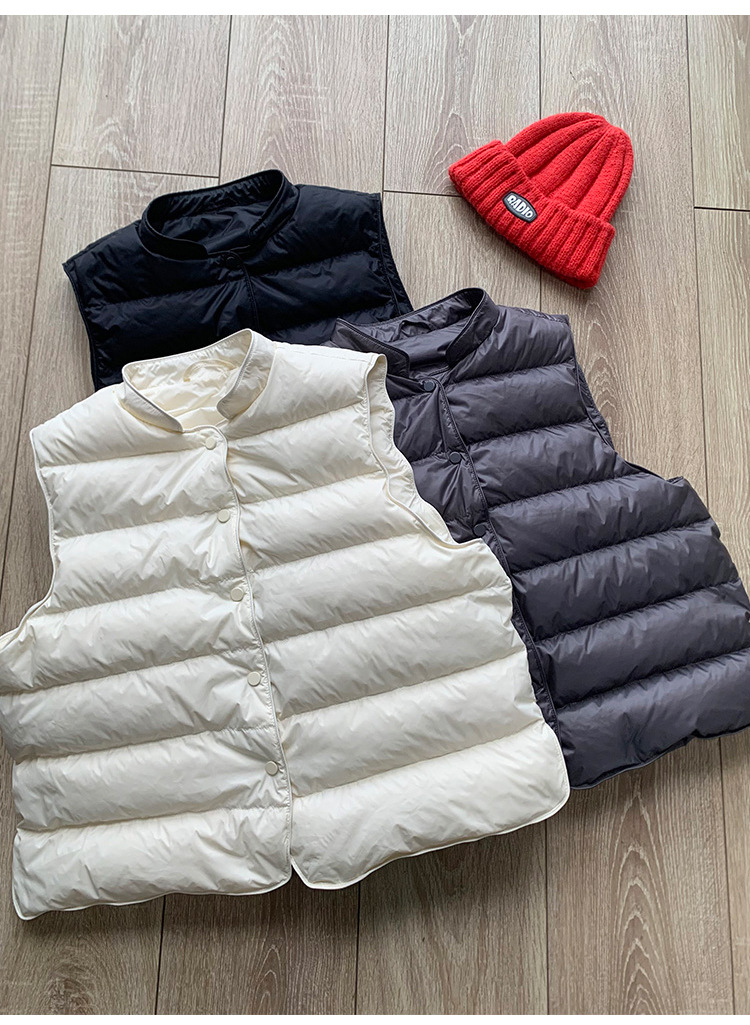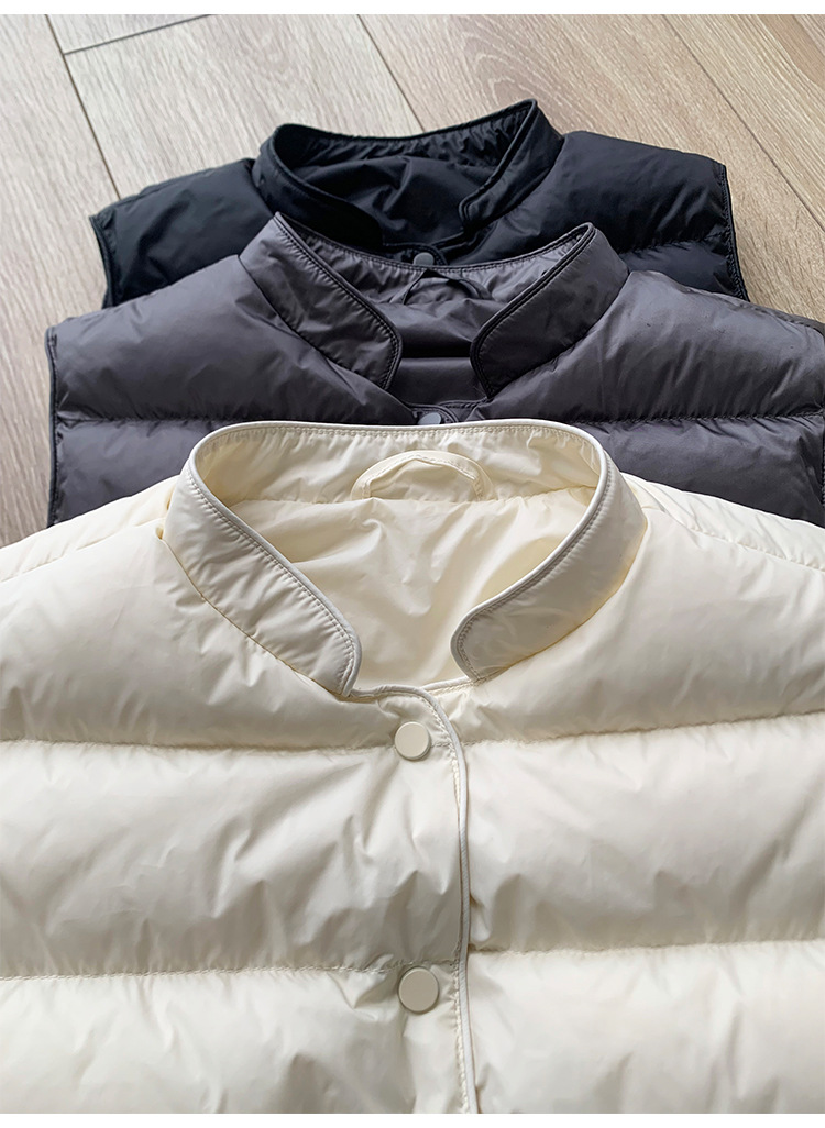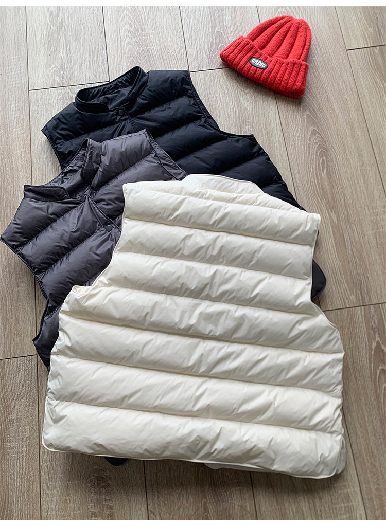 95% 백색 오리털 다운 조끼 여성용 2025 가을 겨울 신상 스탠드 칼라 소형 조끼 패션 이너 조끼 트렌디스토어 가기