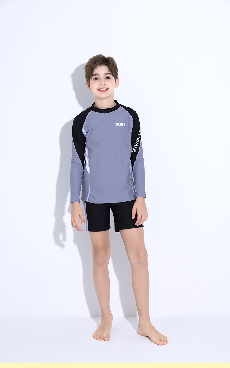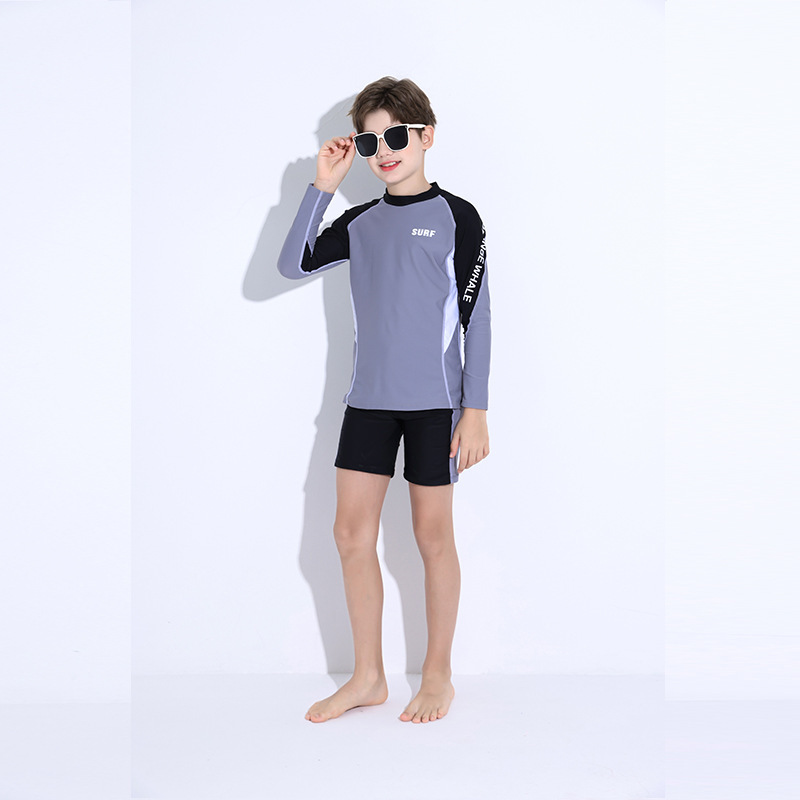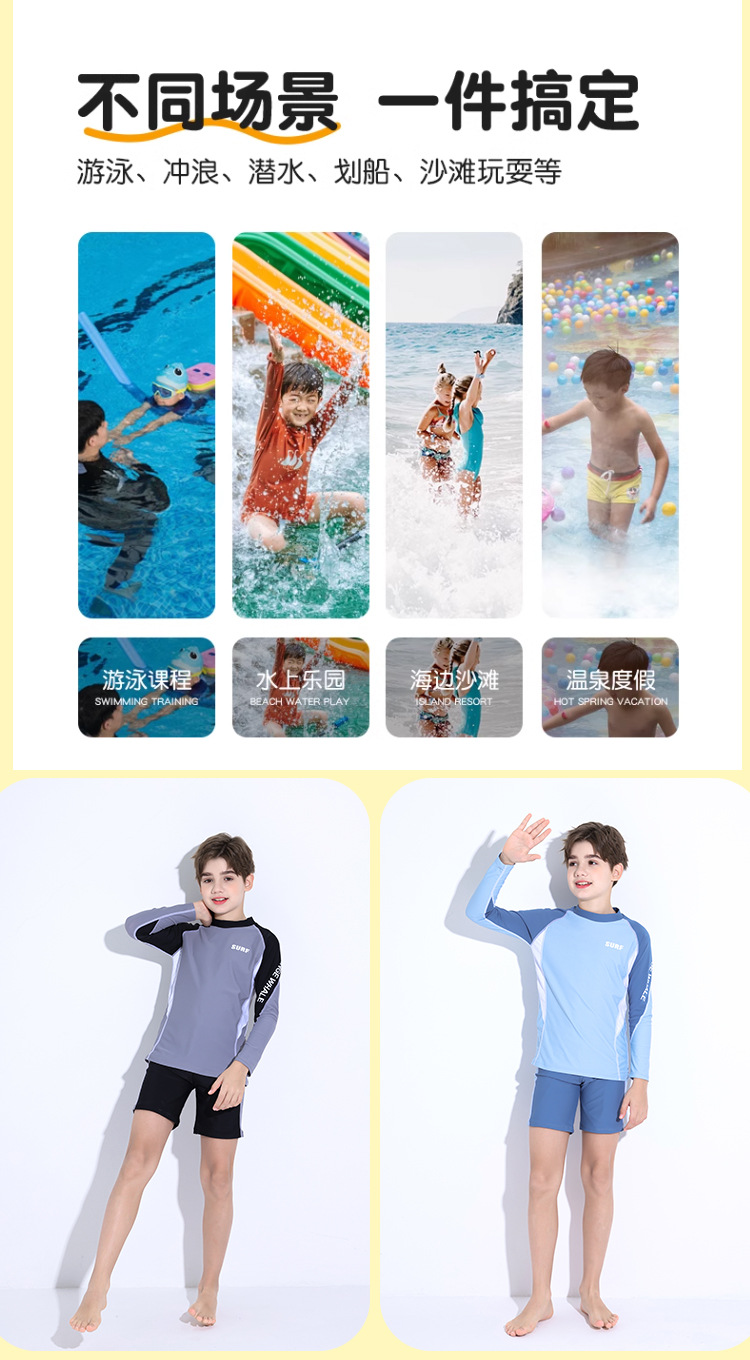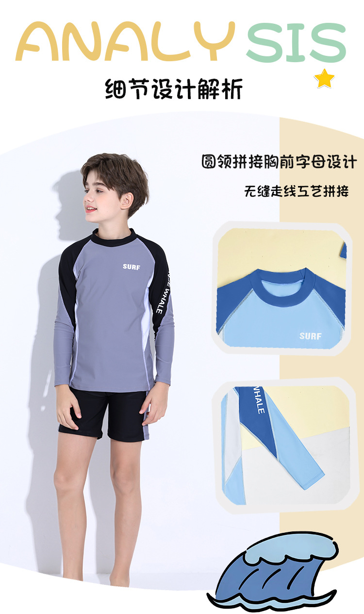 대외 무역 어린이 수영복 소녀 긴팔 분할 선 스크린 빠른 건조 중 및 큰 어린이 해변 휴가 학생 서핑 수영