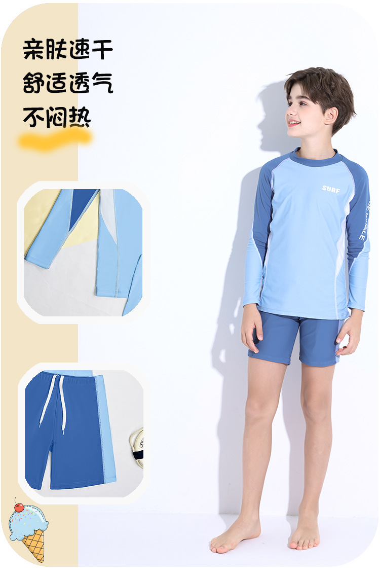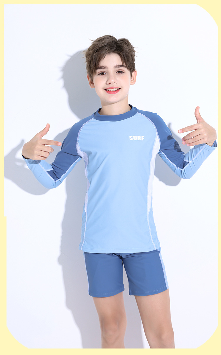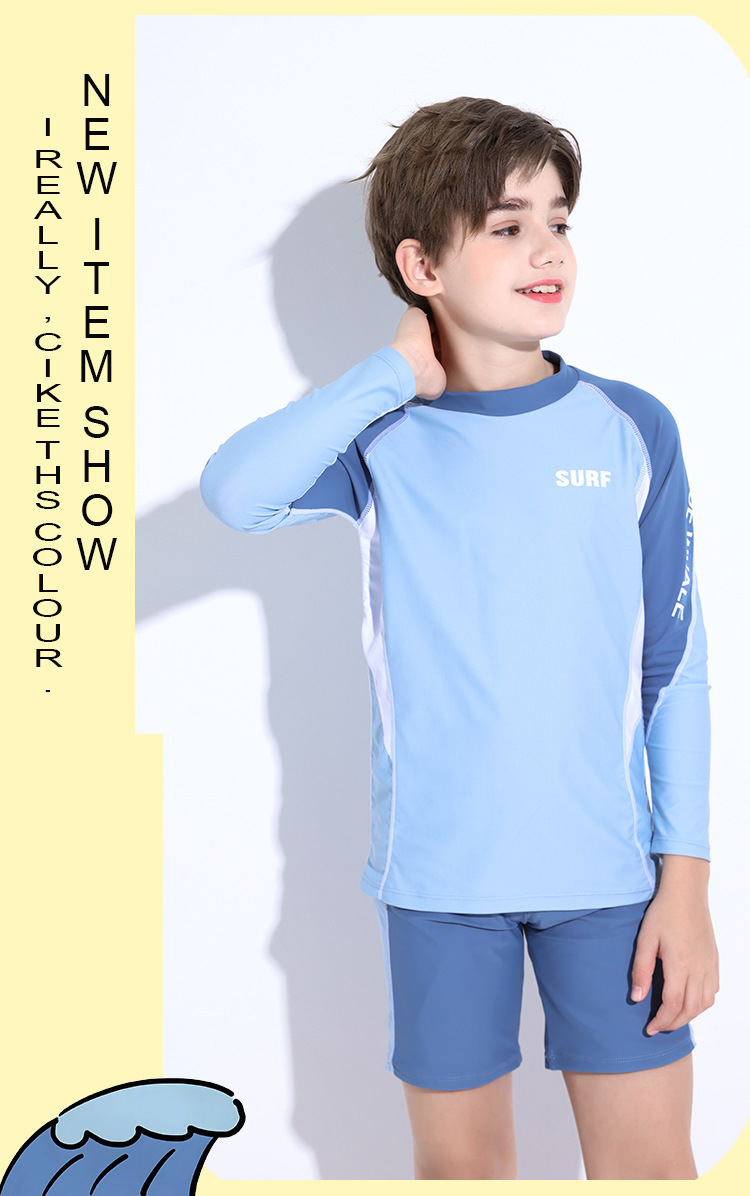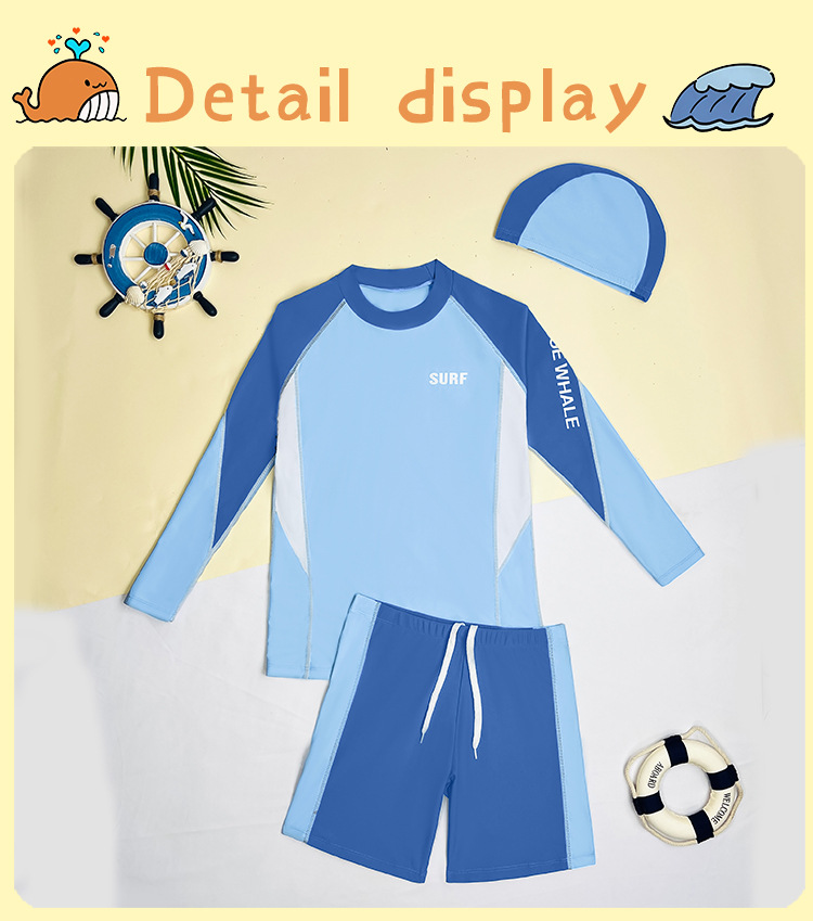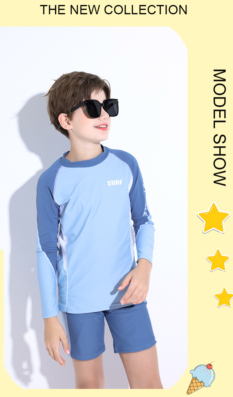 대외 무역 어린이 수영복 소녀 긴팔 분할 선 스크린 빠른 건조 중 및 큰 어린이 해변 휴가 학생 서핑 수영
