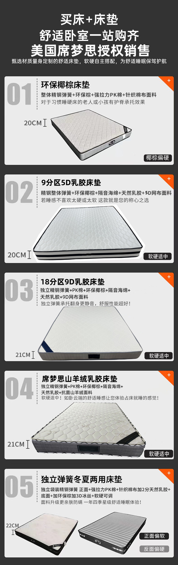 • 싱글 침대 친환경 코코넛 야자 매트리스 [20cm 두께의 스프링 매트리스]