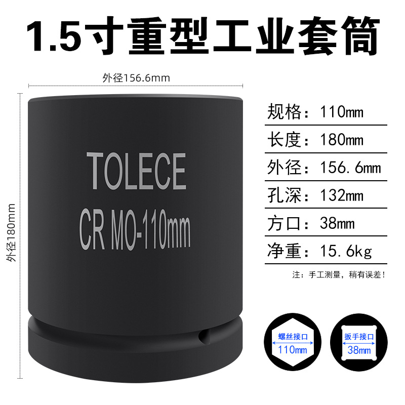 Tuo Rio 1.5 인치 유압 슬리브 38mm 사각형 인터페이스 산업 등급 특수 두꺼운 육각형 무거운 1 인치 반 헤드