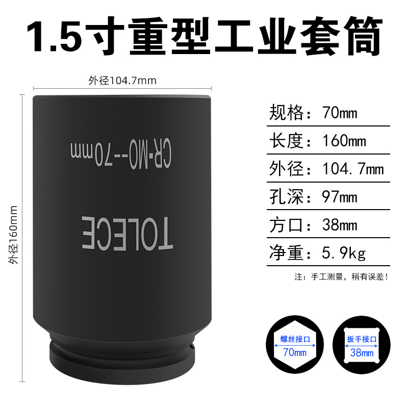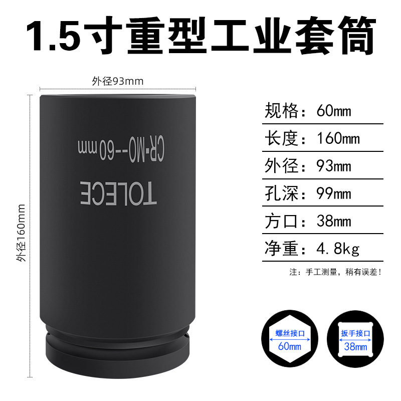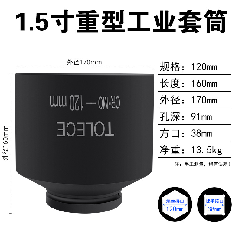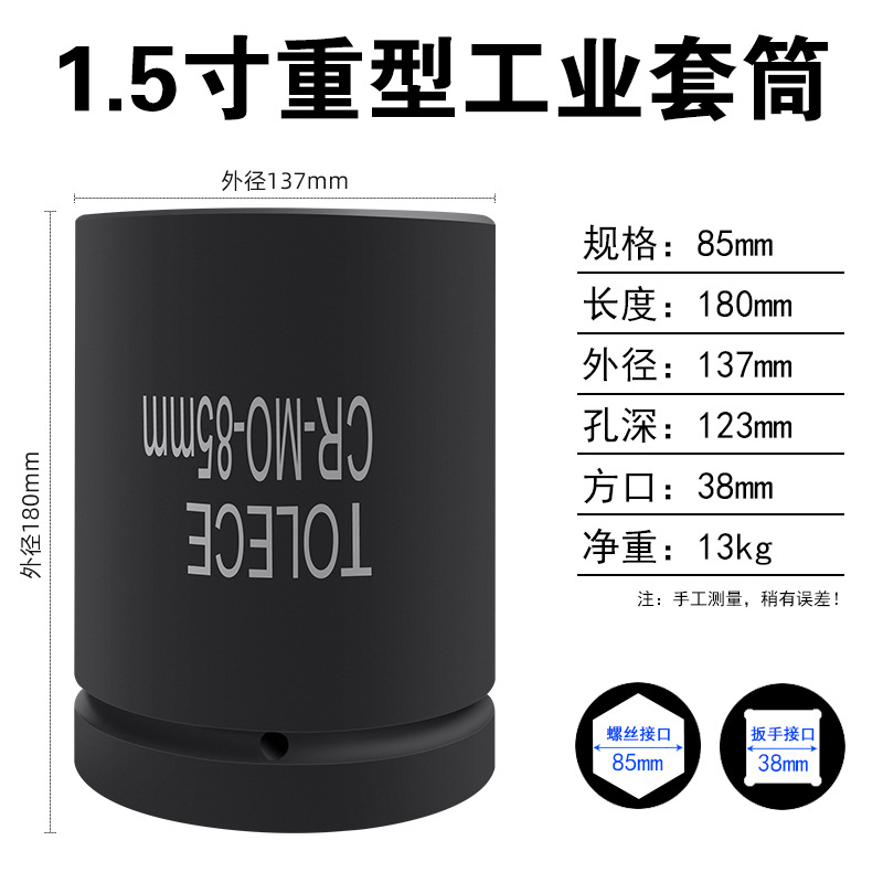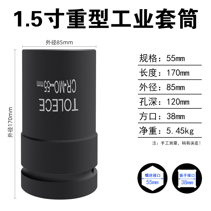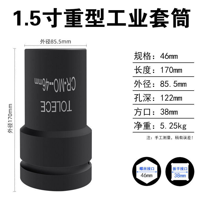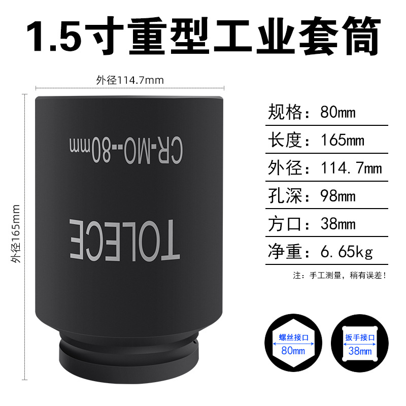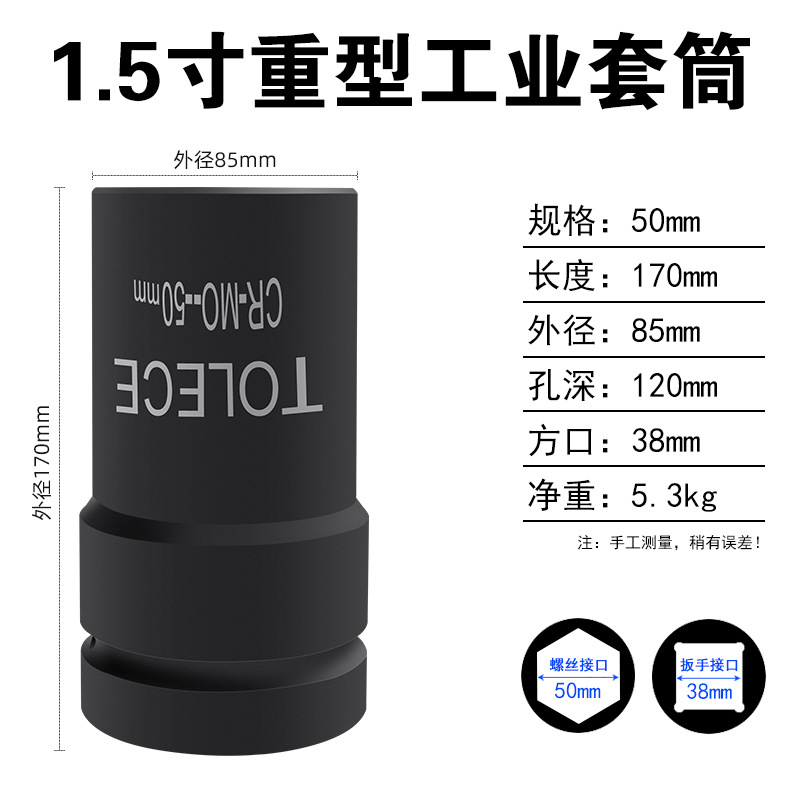 Tuo Rio 1.5 인치 유압 슬리브 38mm 사각형 인터페이스 산업 등급 특수 두꺼운 육각형 무거운 1 인치 반 헤드스토어 가기