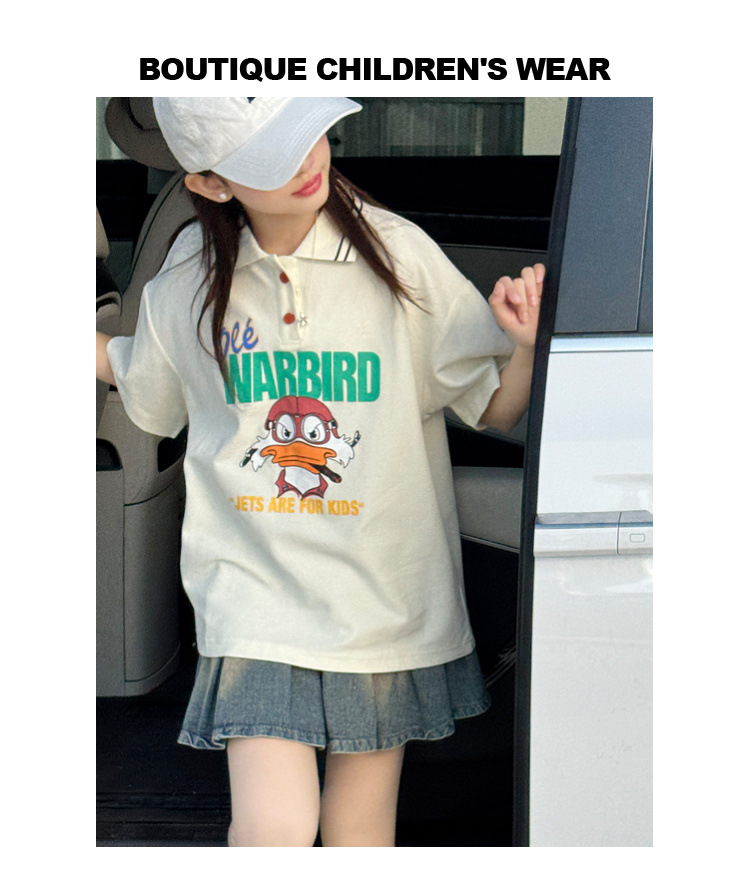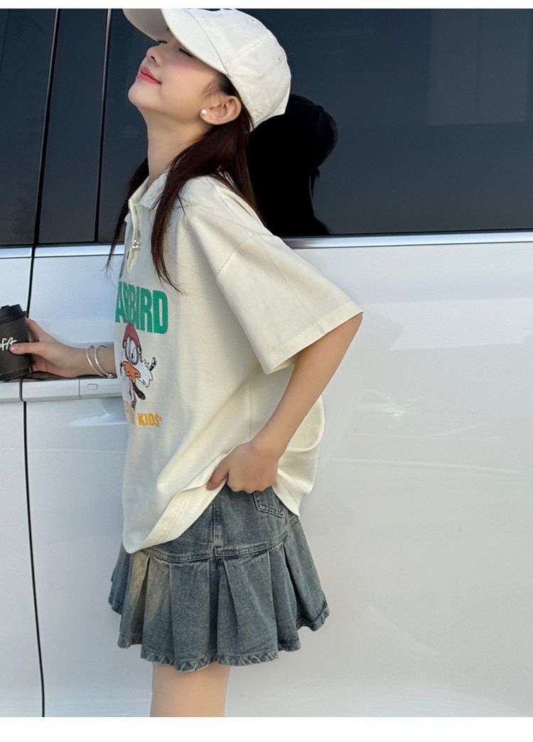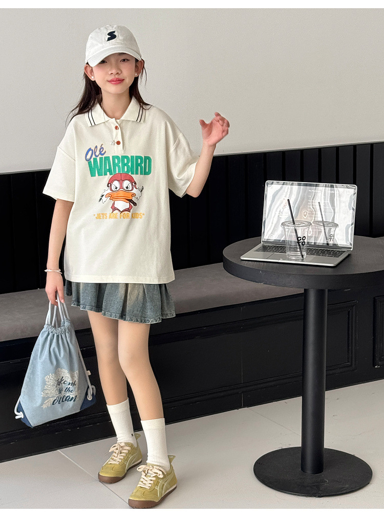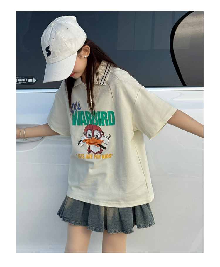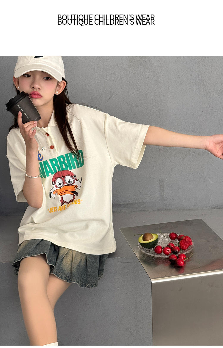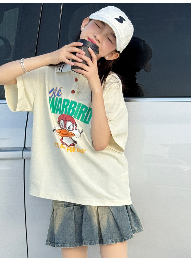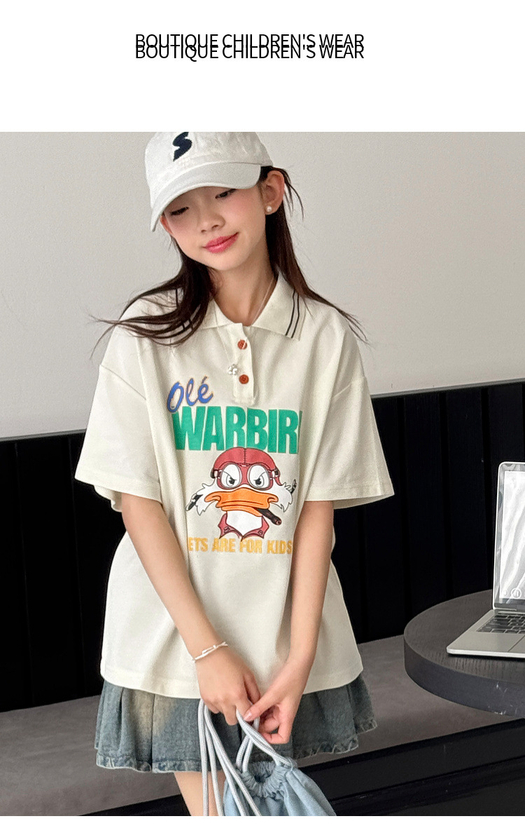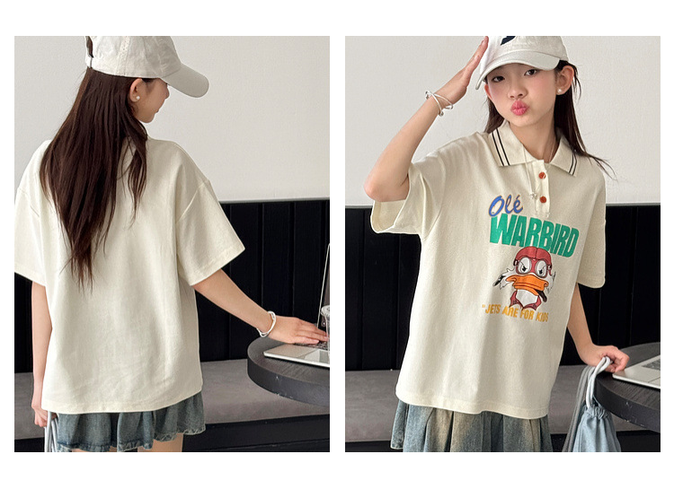 여아 폴로 칼라 반팔 티셔츠 2026년 신상 여름옷 아동용 루즈핏 캐주얼 상의 여아 봄 여름 반팔 티셔츠스토어 가기