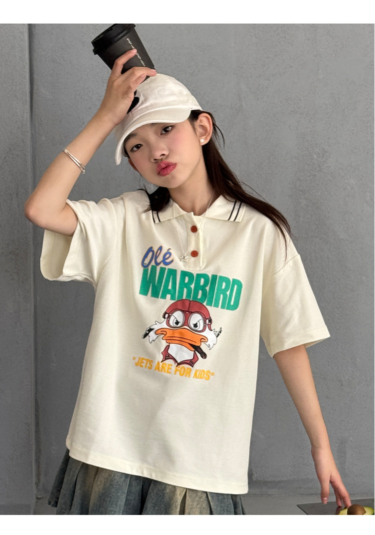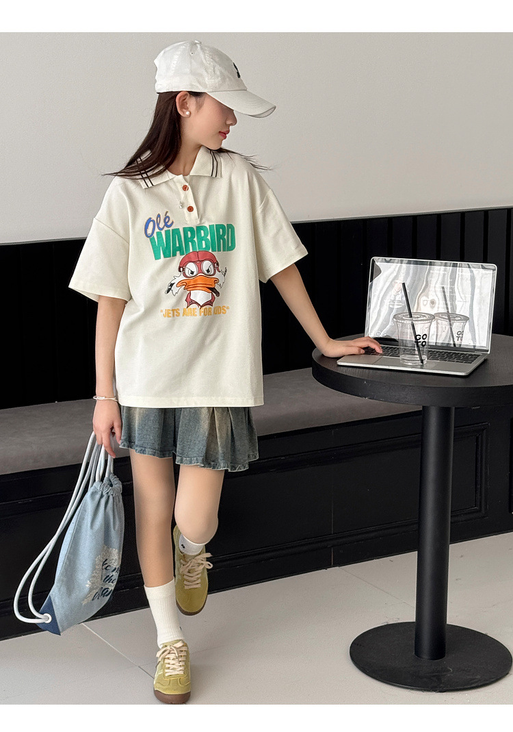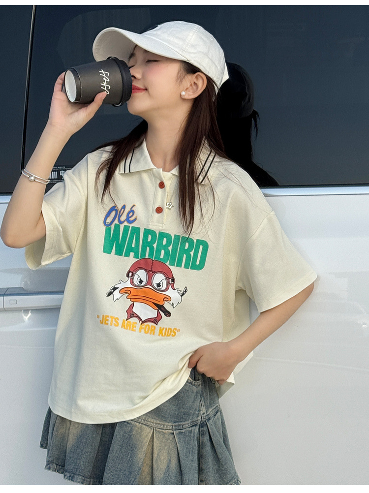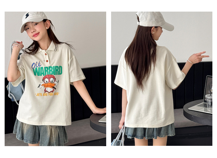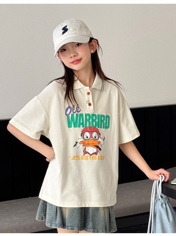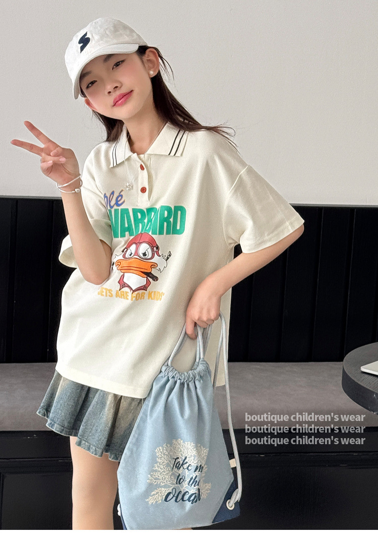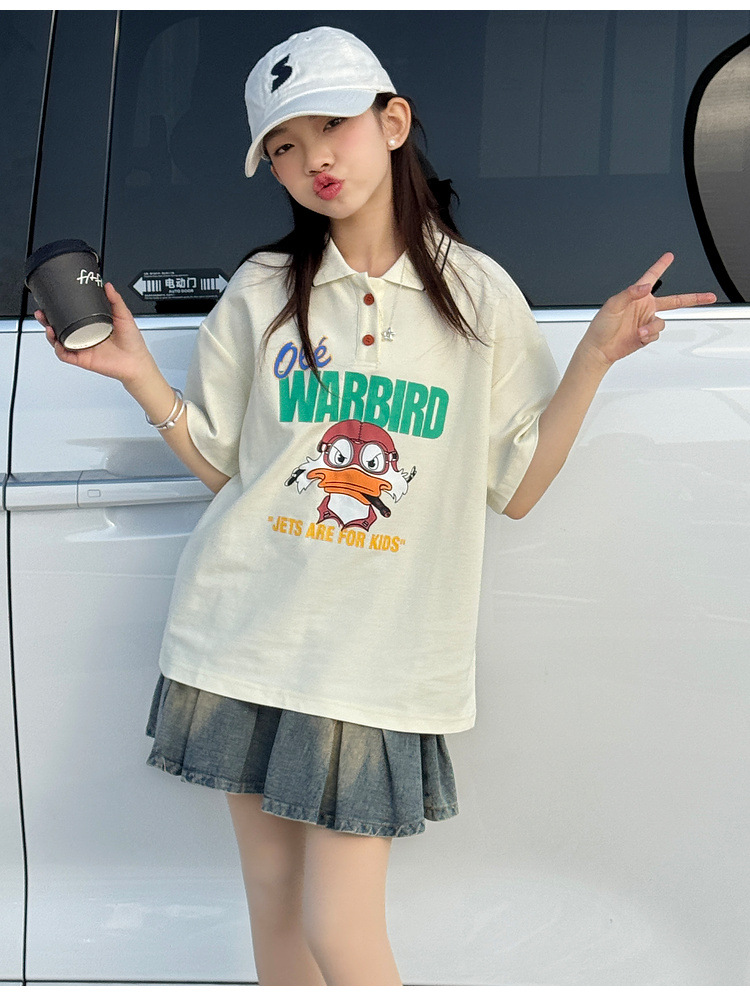 여아 폴로 칼라 반팔 티셔츠 2026년 신상 여름옷 아동용 루즈핏 캐주얼 상의 여아 봄 여름 반팔 티셔츠