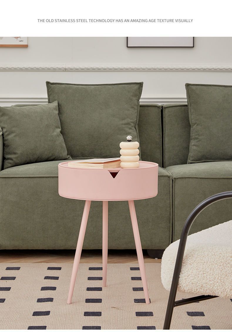 크림 스타일 침대 옆 테이블 현대 간단한 사이드 테이블 작은 커피 테이블 침실 라운드 미니 코너 테이블 새로운 창조적 인 저장 캐비닛스토어 가기