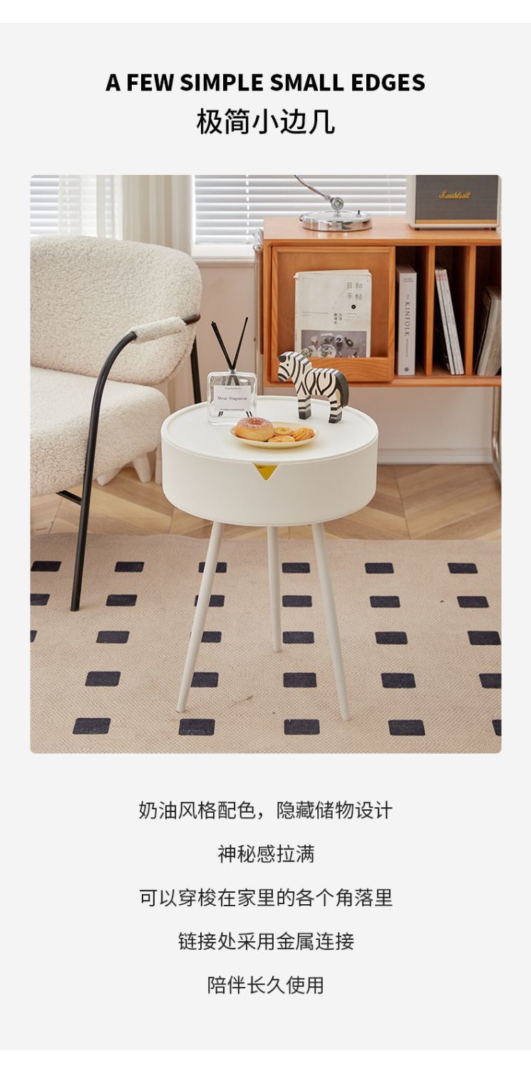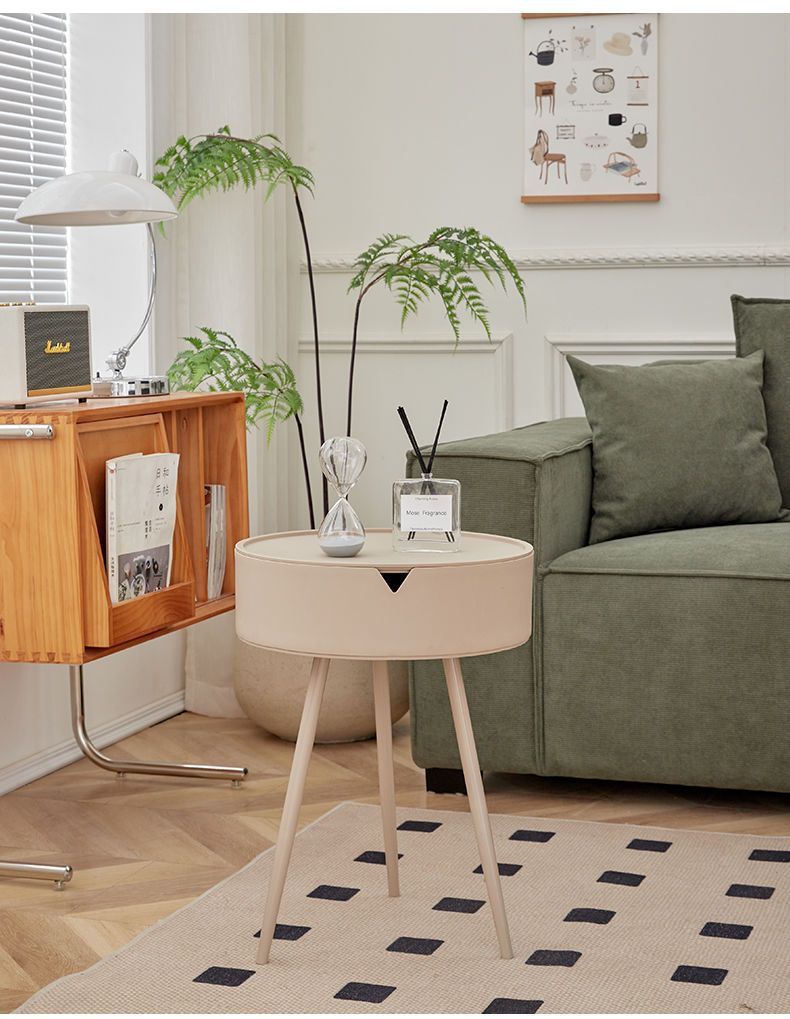 크림 스타일 침대 옆 테이블 현대 간단한 사이드 테이블 작은 커피 테이블 침실 라운드 미니 코너 테이블 새로운 창조적 인 저장 캐비닛