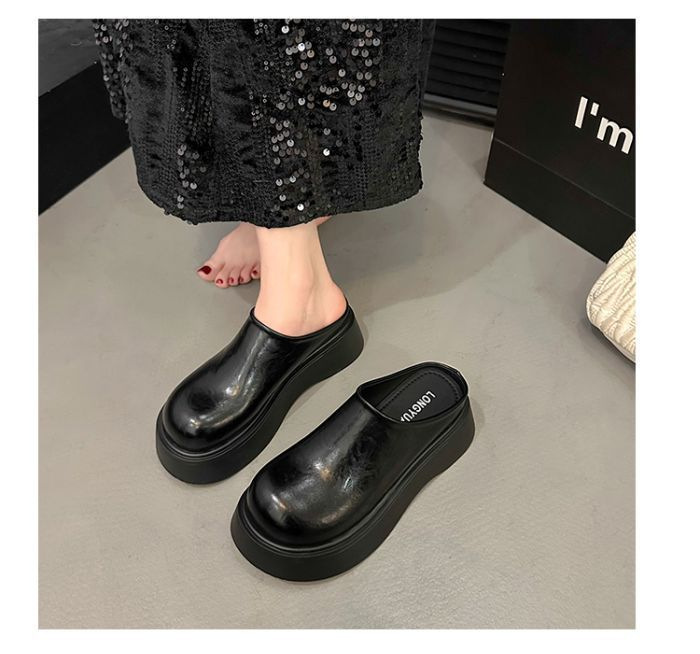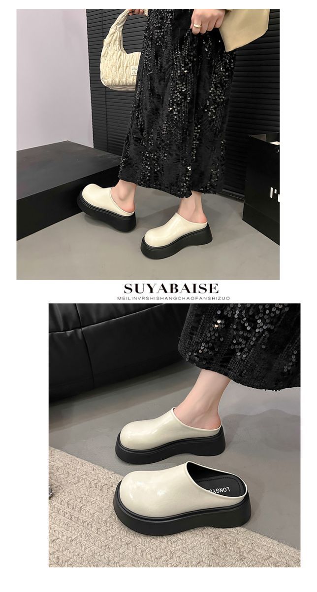 한국 스타일 가방 머리 반 슬립 온 여성 2025 봄 새 두꺼운 단독 뮬러 신발 작은 높이 게으른 샌들스토어 가기