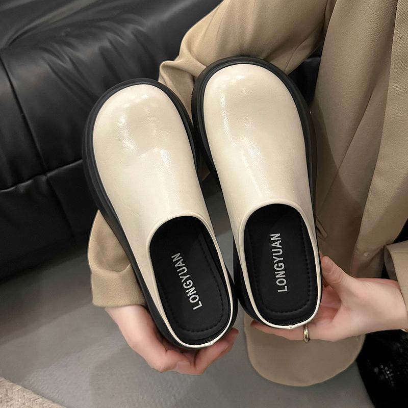 한국 스타일 가방 머리 반 슬립 온 여성 2025 봄 새 두꺼운 단독 뮬러 신발 작은 높이 게으른 샌들