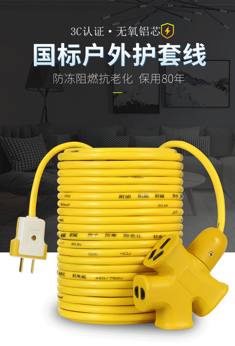 국가 표준 케이블 2 코어 1.5 2.5 평방 가정용 패치 패널 야외 방수 쇠고기 힘줄 연장 코드 와이어 코드스토어 가기