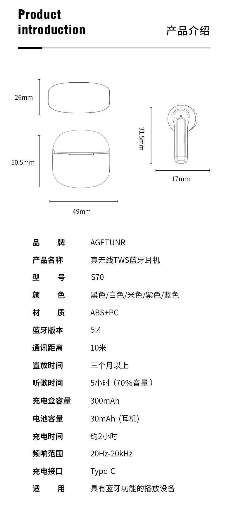 국경 간 실행 볼륨 새로운 S70 무선 블루투스 헤드셋 TWS 절반 인 이어 V5.4 음악 게임 헤드셋스토어 가기