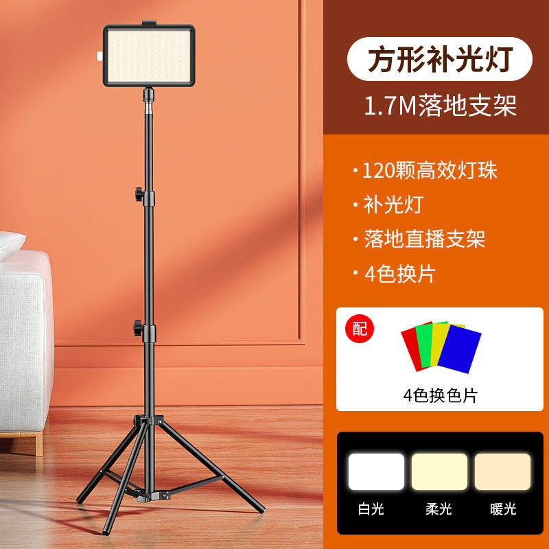 • 소형 [3색 조광 가능 소프트 라이트] 사각 조명 - 1.7m 브래킷 + 경사 촬영 + 단일 카메라 위치