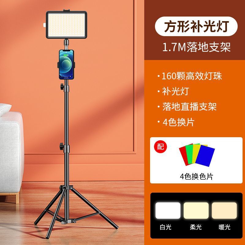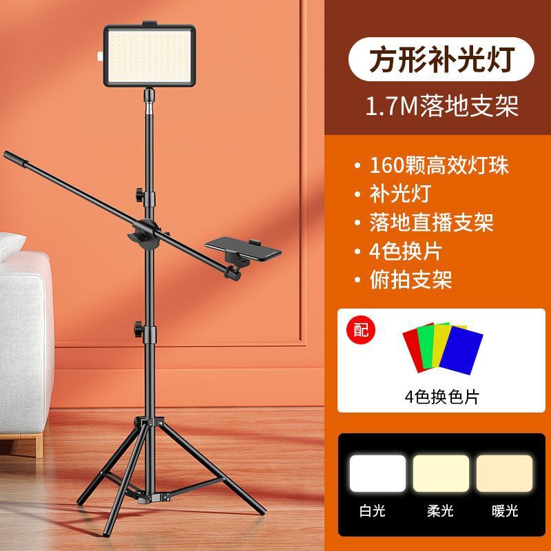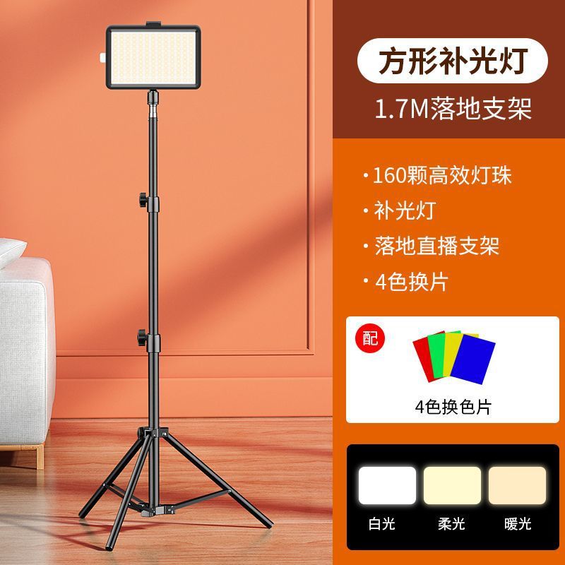 • 대형 [3색 조광 가능 소프트 라이트] 사각 램프 - 1.7m 브래킷 + 경사 촬영 + 단일 카메라 위치