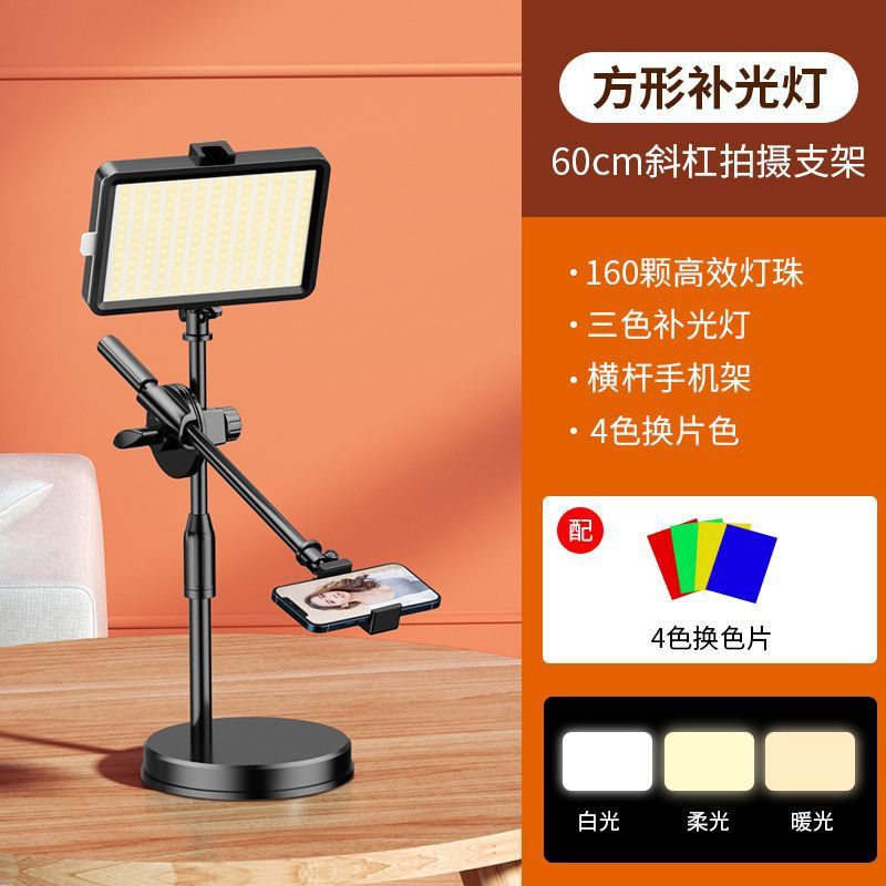 • 소형 [3색 조광 가능 소프트 라이트] 사각 램프 - 데스크탑 접이식 모델 + 오버헤드 슈팅 폴 + 셀카