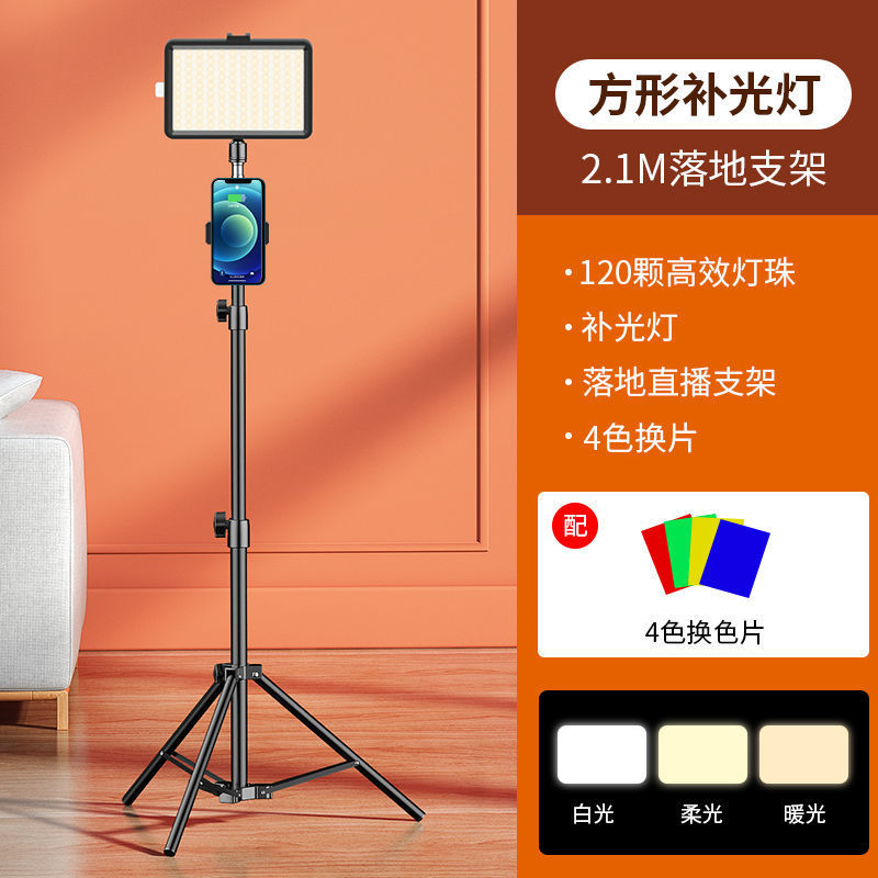 • 소형 [3색 조광 가능 소프트 라이트] 사각 조명 - 2.1m 브래킷 + 경사 촬영 + 단일 카메라 위치