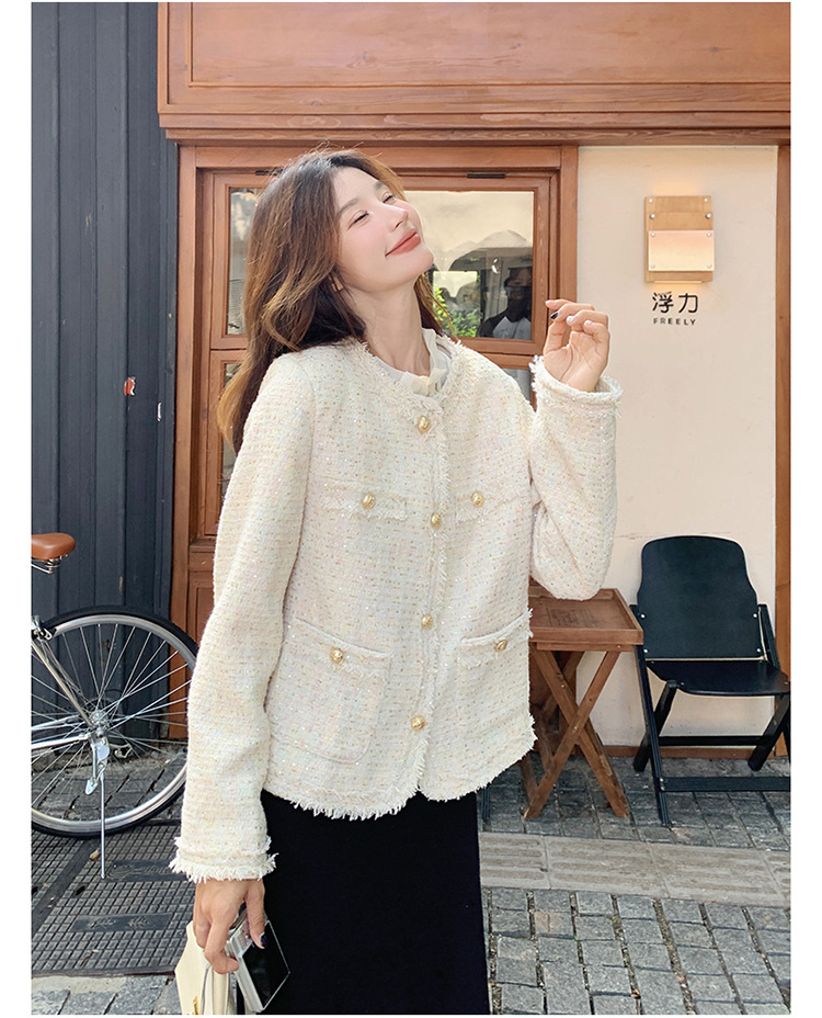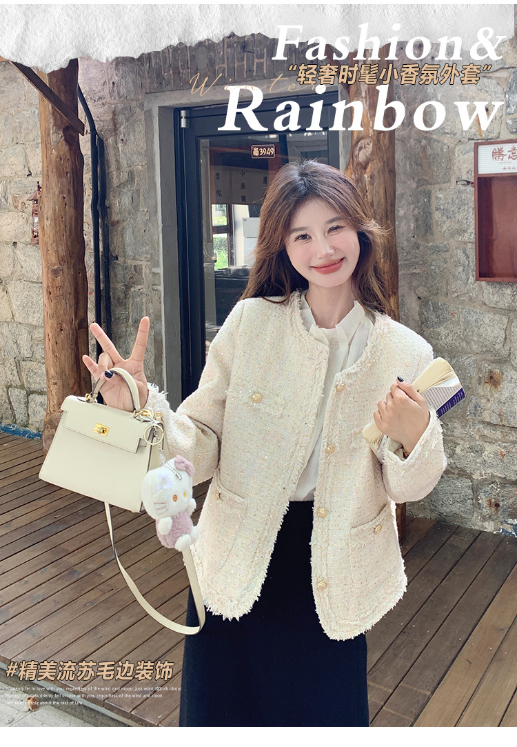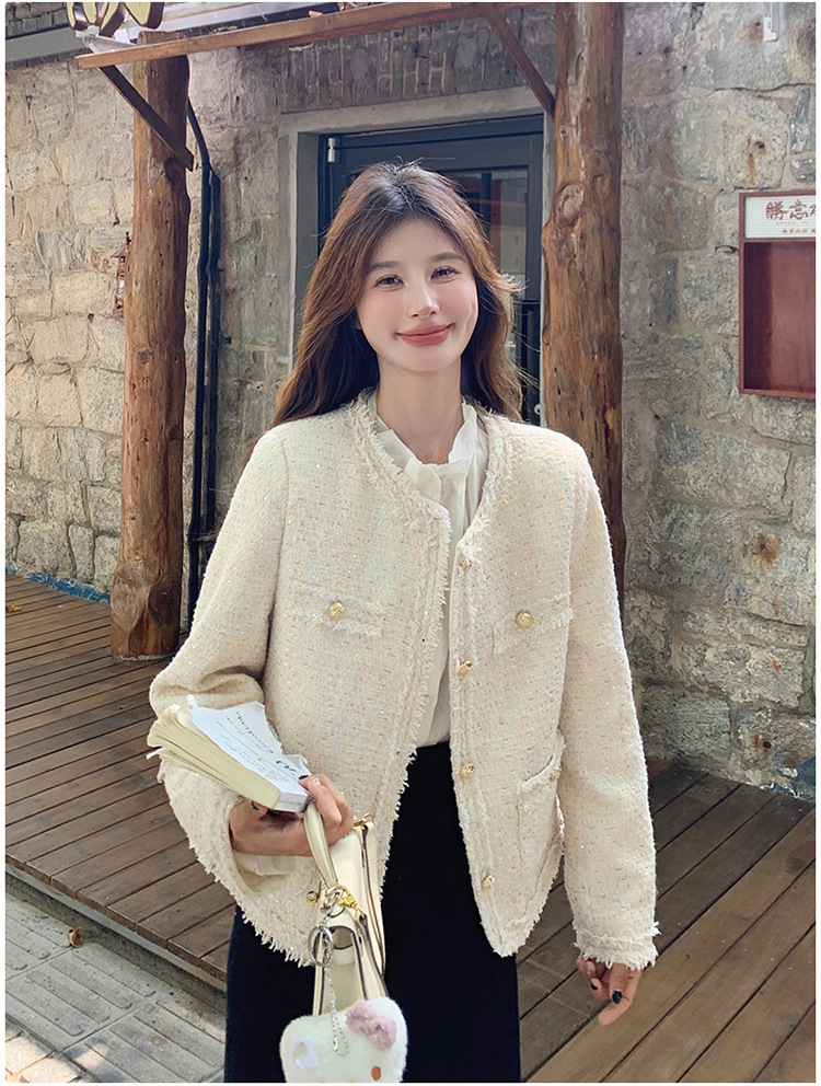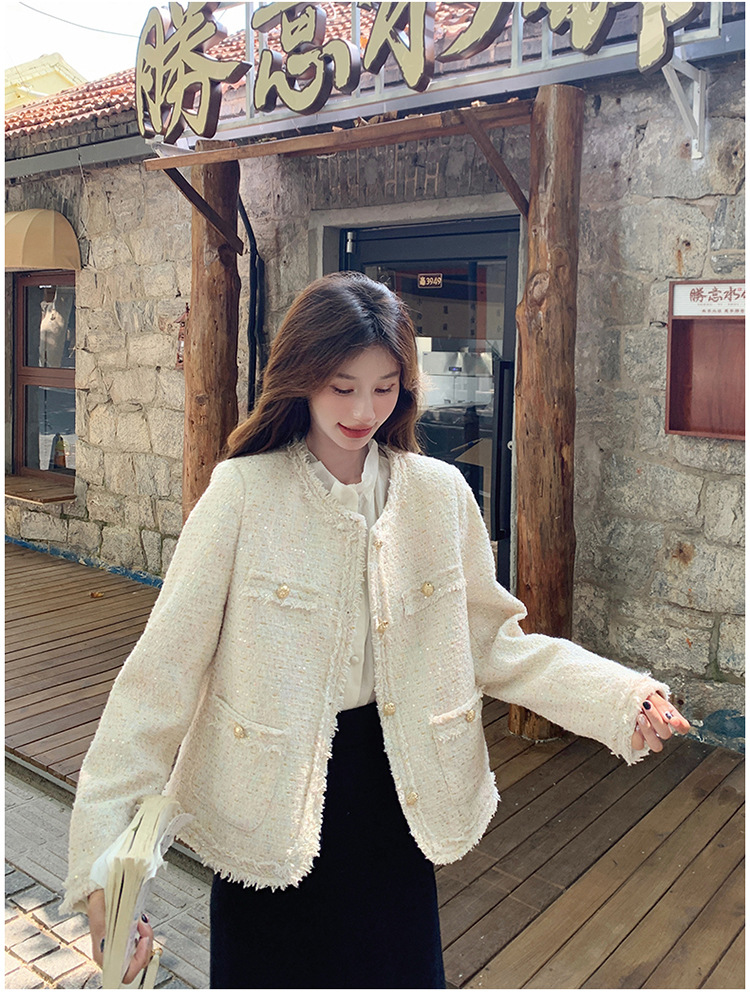 높은 수준의 기질 사교계 작은 향기로운 스타일 탑 여성의 2025 봄 새로운 슈퍼 잘 생긴 작은 트위드 코트스토어 가기