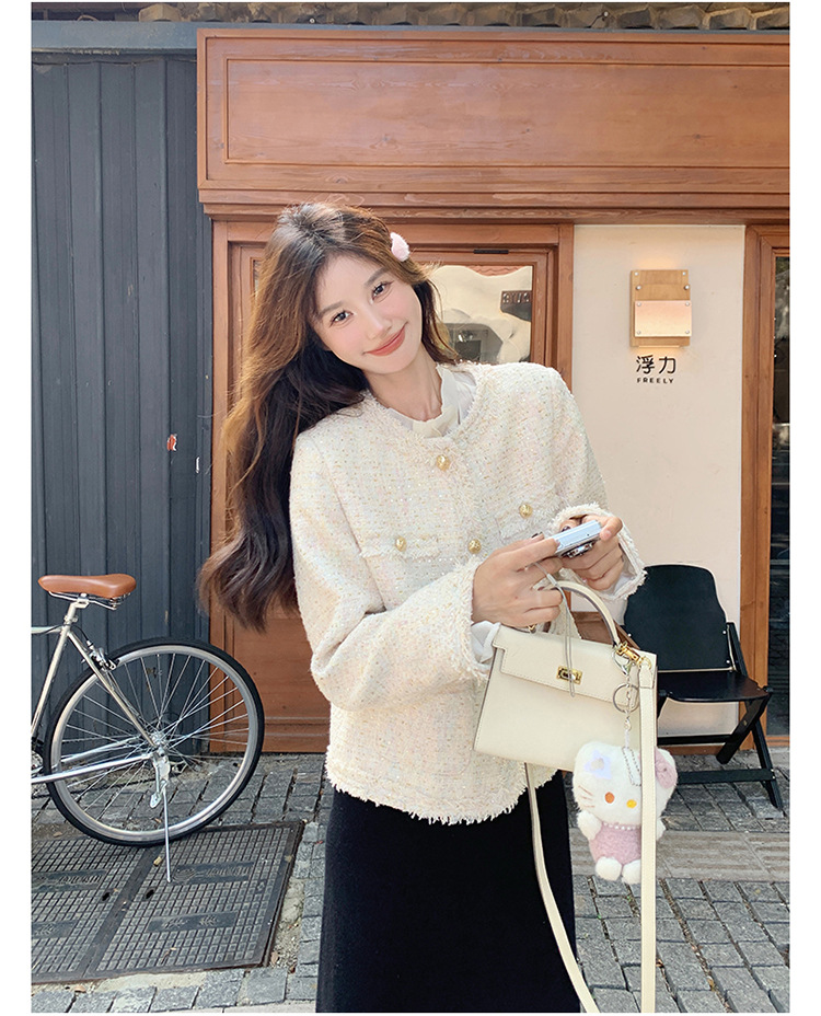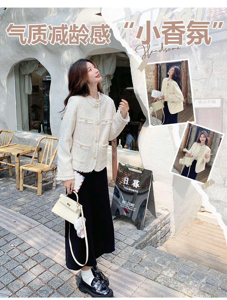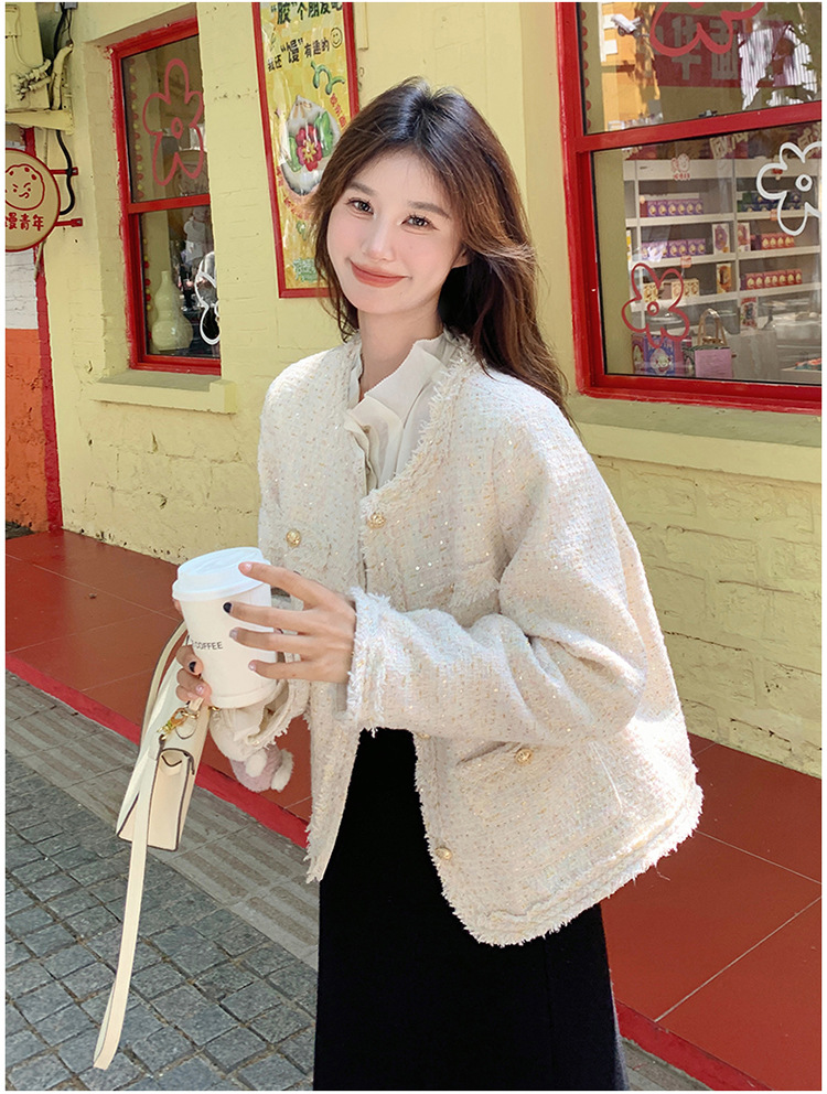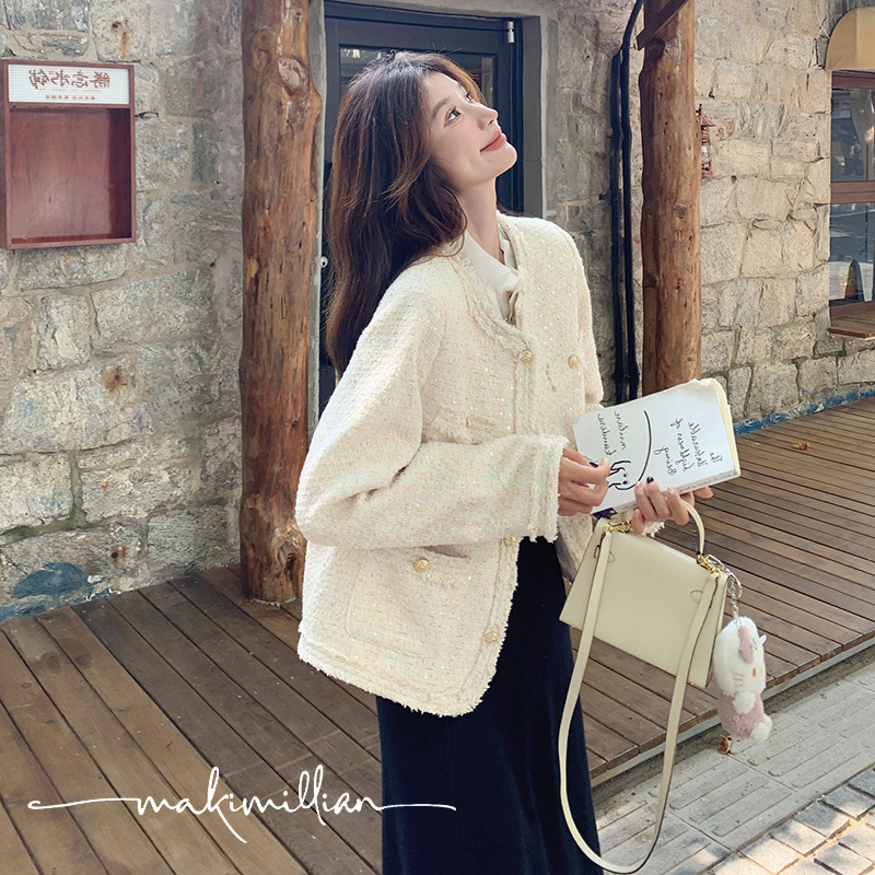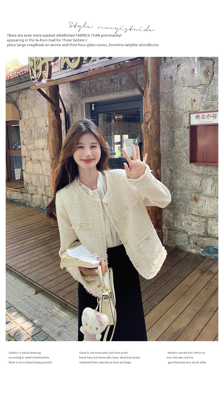 높은 수준의 기질 사교계 작은 향기로운 스타일 탑 여성의 2025 봄 새로운 슈퍼 잘 생긴 작은 트위드 코트스토어 가기