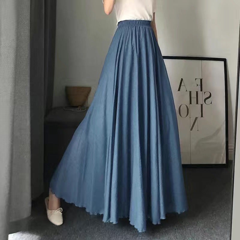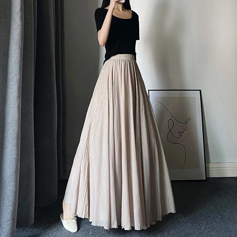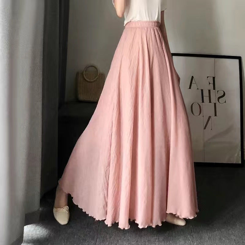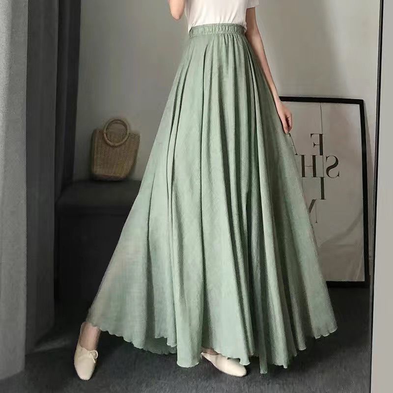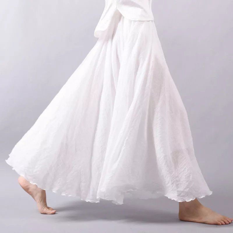 더블 레이어 스커트 야마모토 새로운 예술적 여름 면 린넨 높은 허리 레트로 긴 스커트 발목 요정 치마