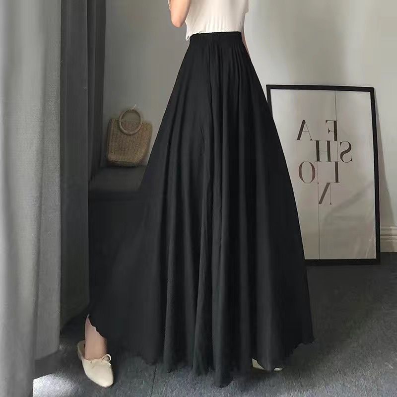 더블 레이어 스커트 야마모토 새로운 예술적 여름 면 린넨 높은 허리 레트로 긴 스커트 발목 요정 치마스토어 가기