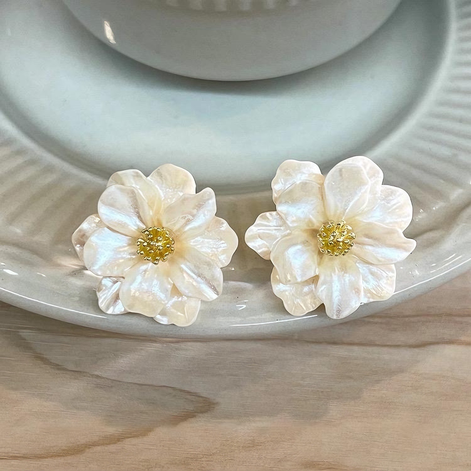 프랑스 스타일의 우아한 동백 귀 스터드 여성의 2025 새로운 폭발성 하이 엔드 라이트 럭셔리 패션 올 매치 귀걸이 및 귀 보석스토어 가기