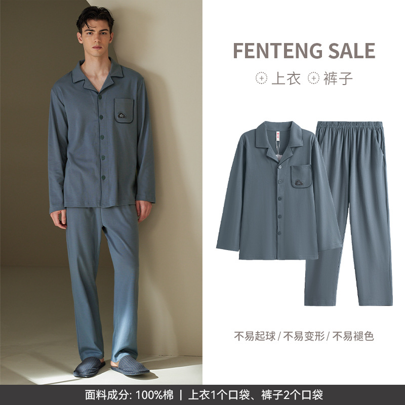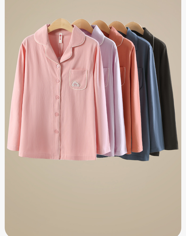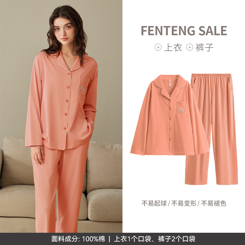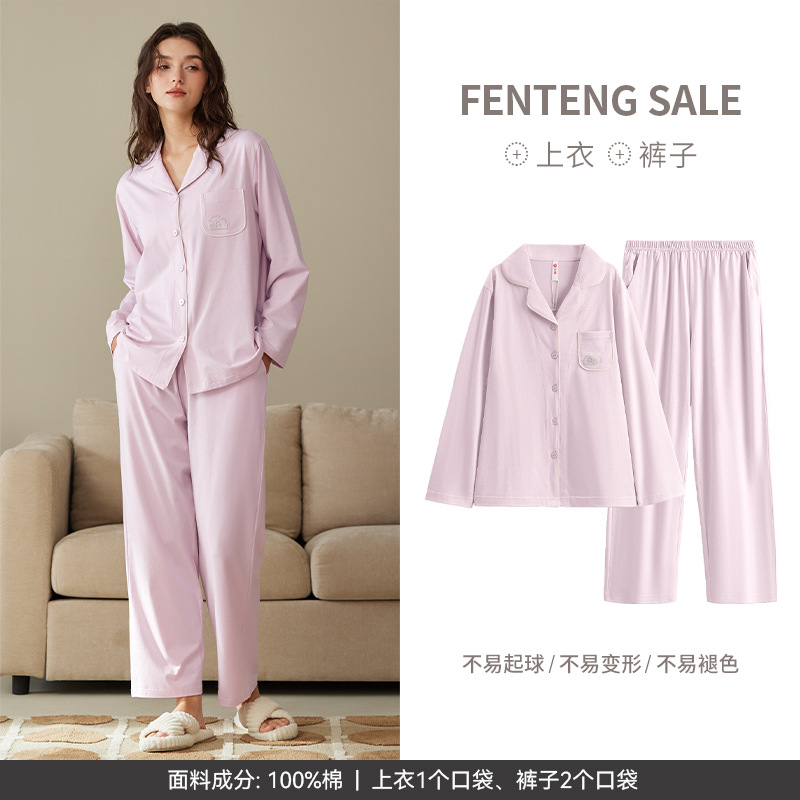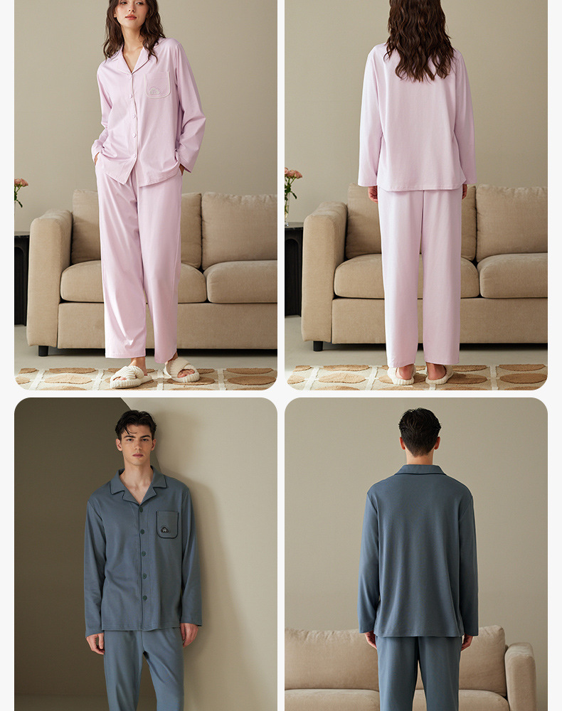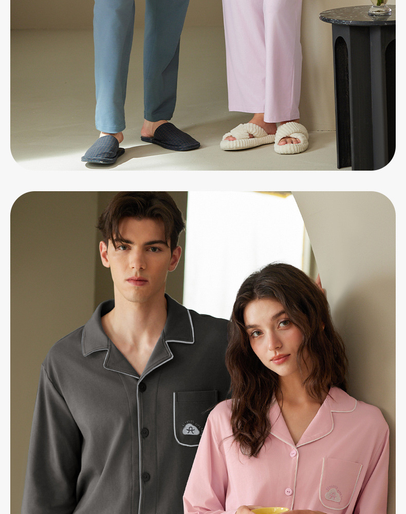 [잠자는 면] 커플 잠옷 새 순면 긴 소매 여성 세트 느슨한 캐주얼 플러스 사이즈 홈 의류스토어 가기