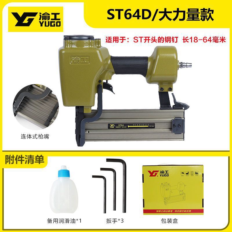 Yugong 공압 F30 스트레이트 네일 건은 ST64 스틸 네일 건 T50 가스 네일 건 목공 그레인 네일 코드 네일 스틸 로우 건을 스테이플하지 않습니다.