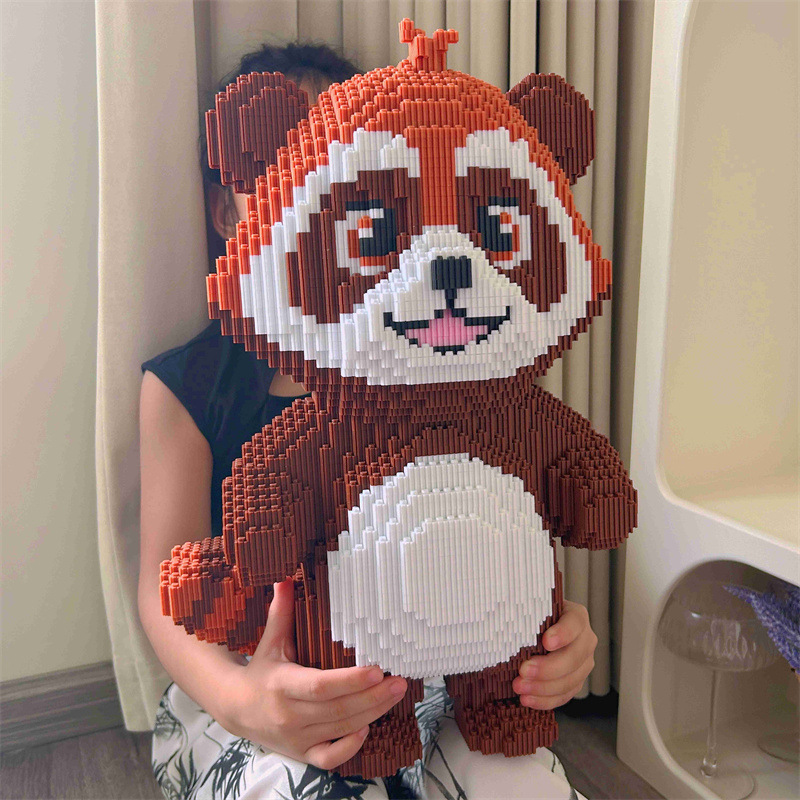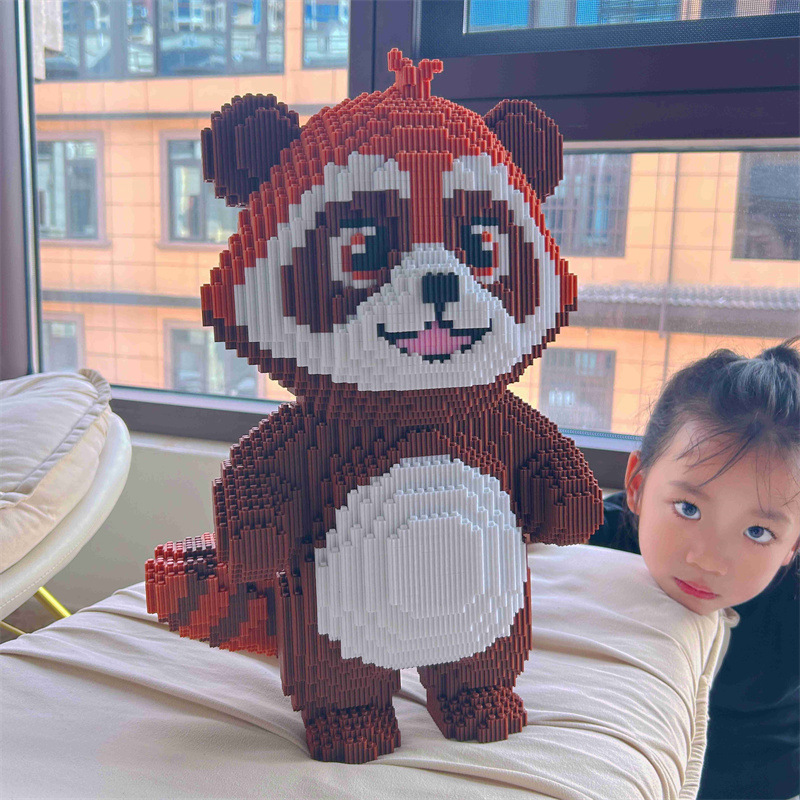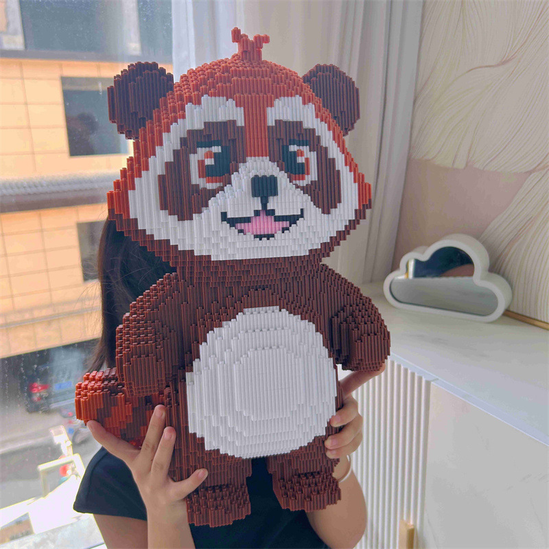 [국경 간 표시 지원] 2025 새로운 다크 브라운 레드 팬더 빌딩 블록 장난감 도매 물리적 상점 조립 장난감