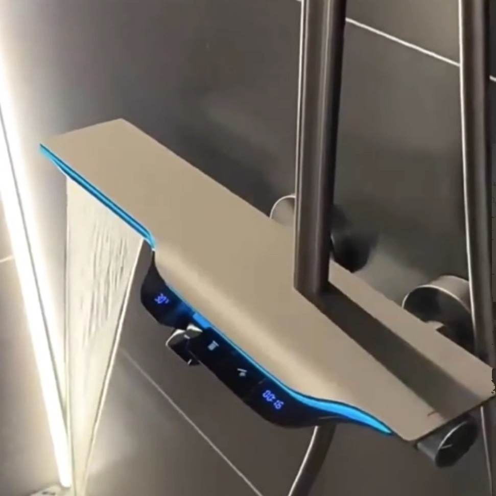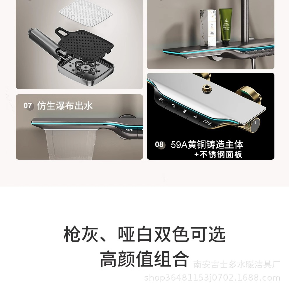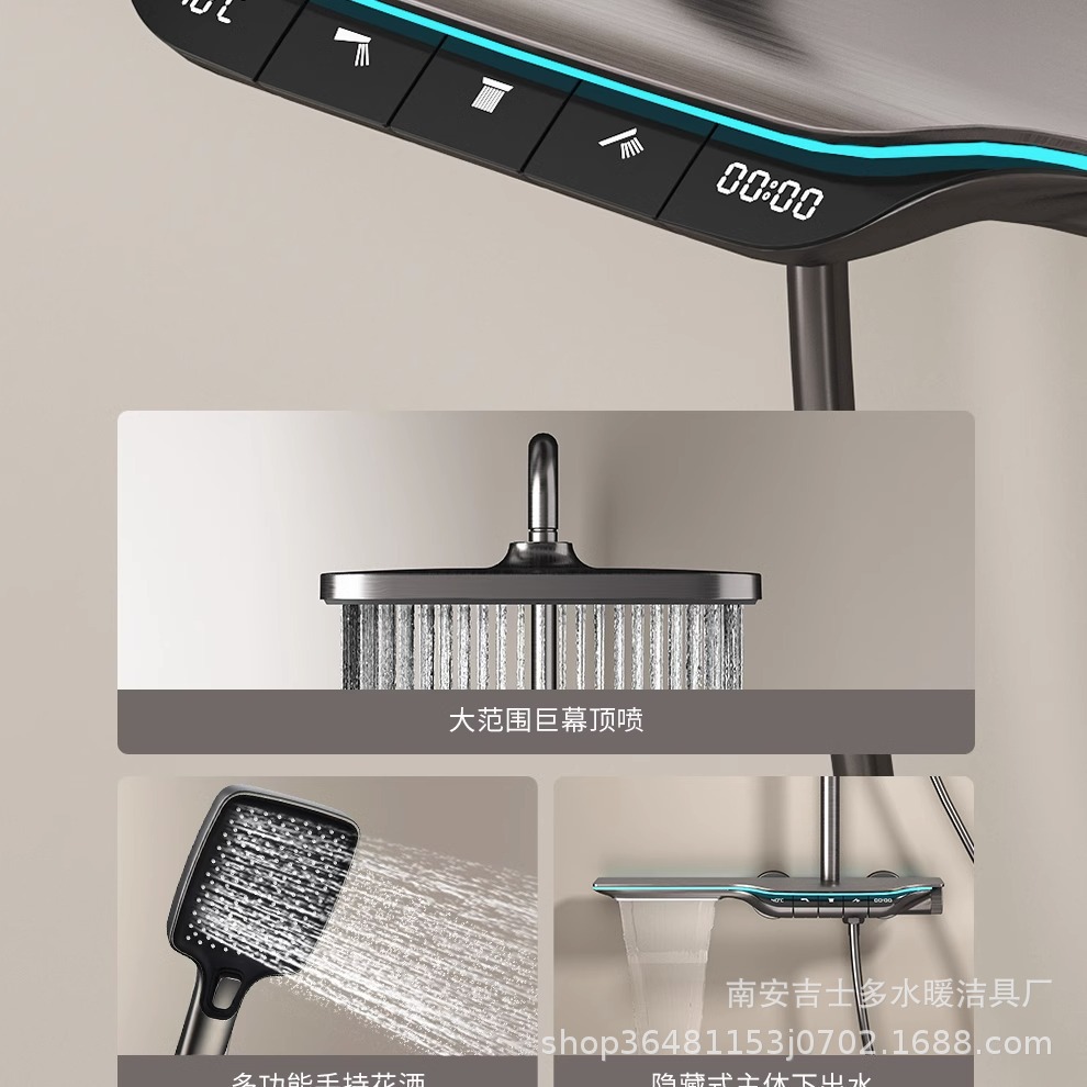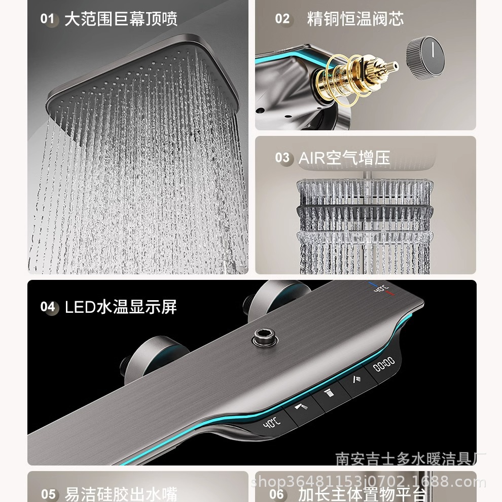 인터넷 기념 디지털 디스플레이 온도 조절 샤워 세트 가정용 모든 구리 혼합 밸브 압축 욕실 폭포 샤워 분위기 조명스토어 가기