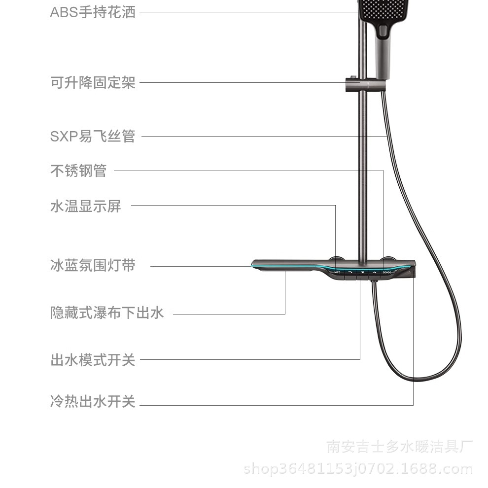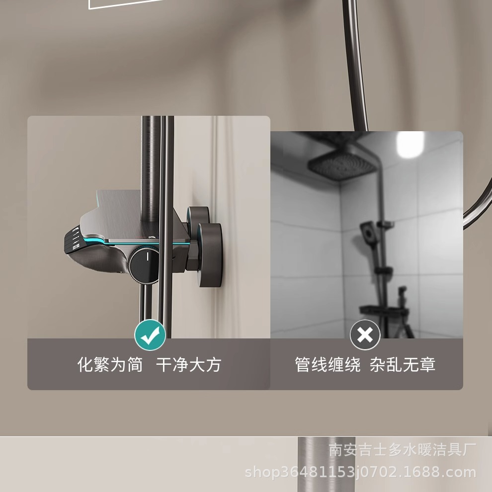 인터넷 기념 디지털 디스플레이 온도 조절 샤워 세트 가정용 모든 구리 혼합 밸브 압축 욕실 폭포 샤워 분위기 조명