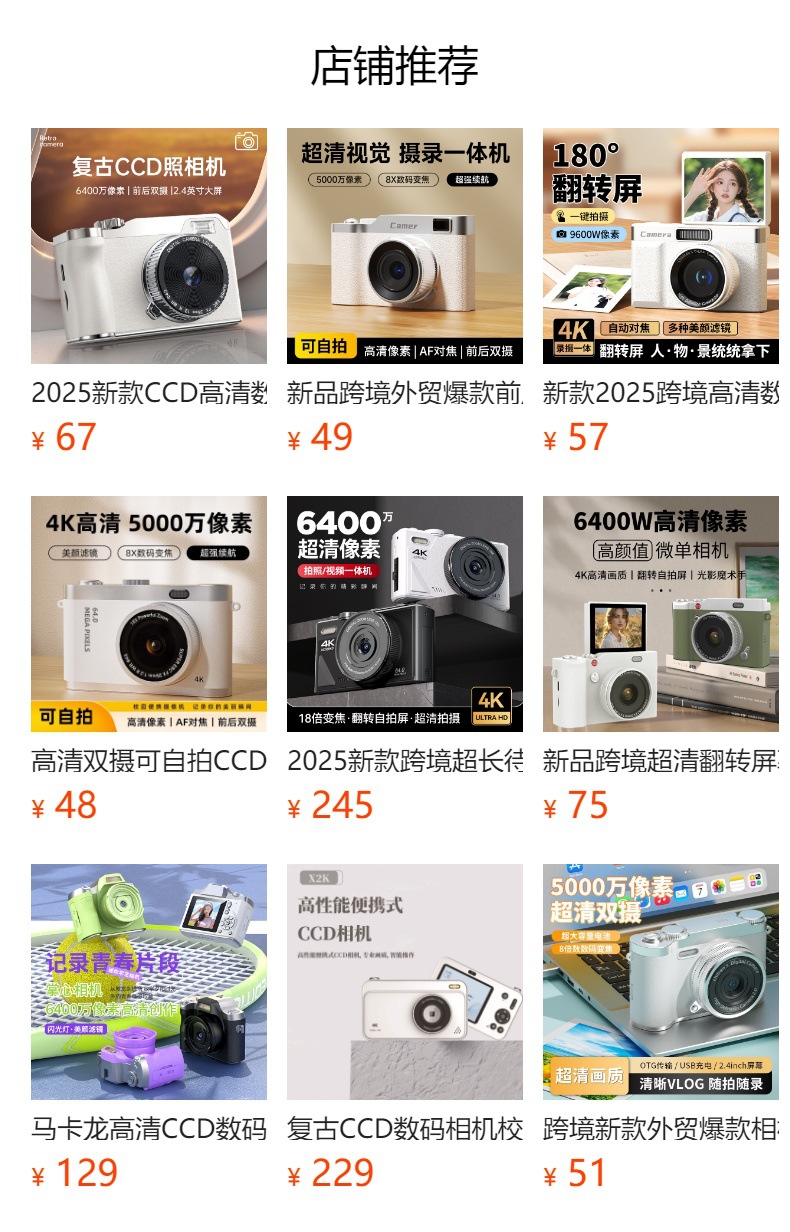 새로운 국경 간 CCD 듀얼 카메라 디지털 카메라 복고풍 저렴한 학생 고화질 사진 및 비디오 카드 카메라 미니스토어 가기