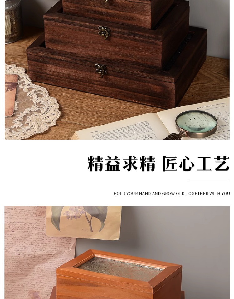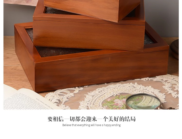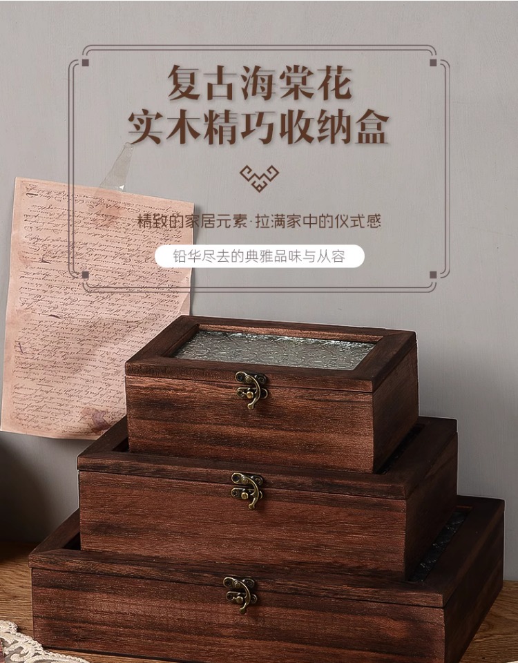 베고니아 꽃 유리 보관 상자 복고풍 나무 데스크탑 잡화 마무리 나무 상자 장식 드레싱 테이블 장식 장식 상자스토어 가기